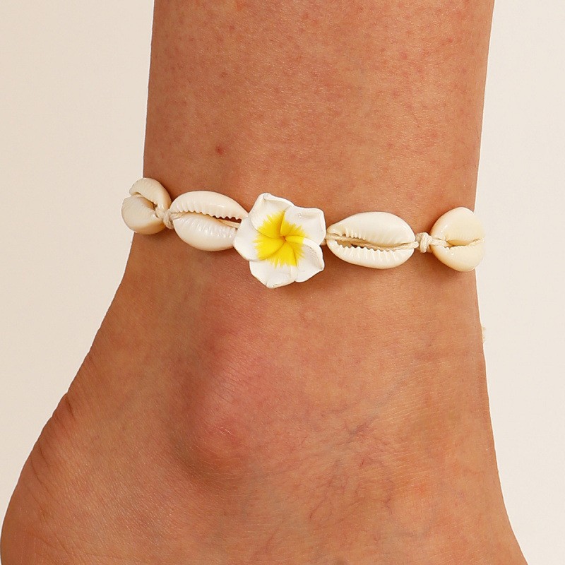 Bransoletka 2w1 na stopę i rękę, na sznurku, MUSZELKI i KWIAT HAWAJSKI B542ZO