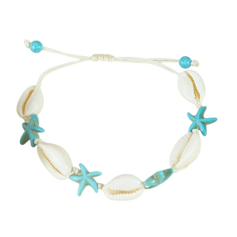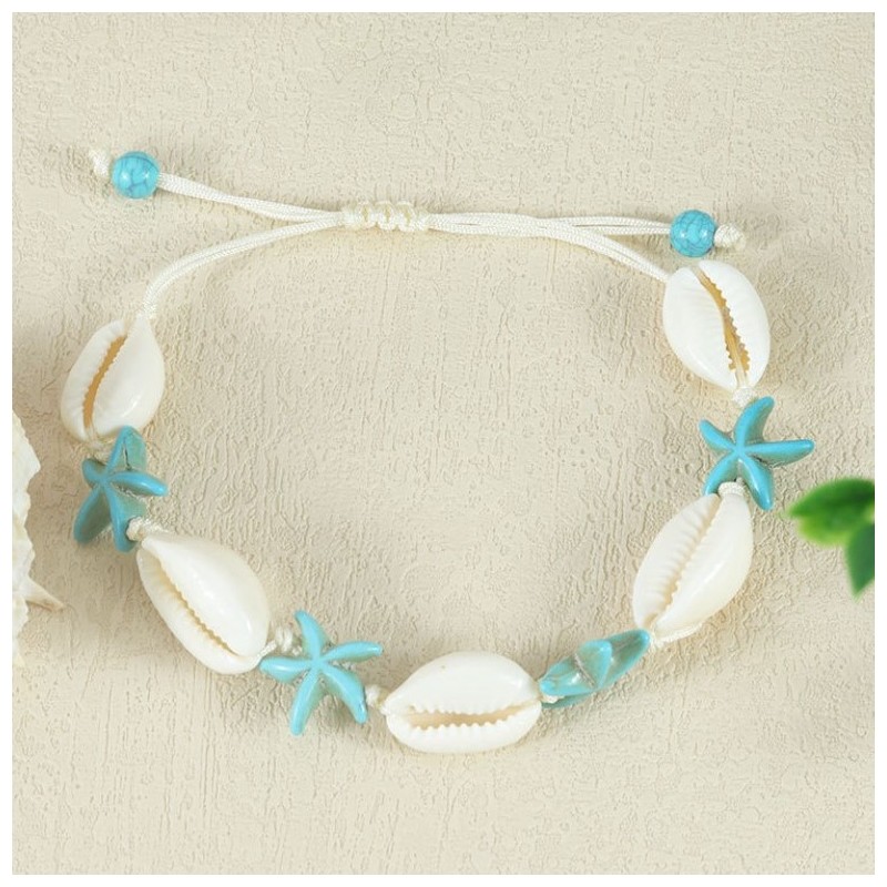 Bransoletka 2w1 na stopę i rękę na sznurku, MUSZELKI i ROZGWIAZDY B543N