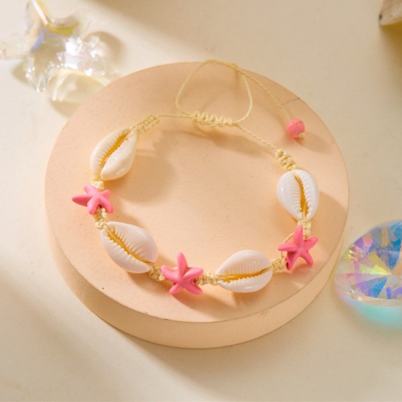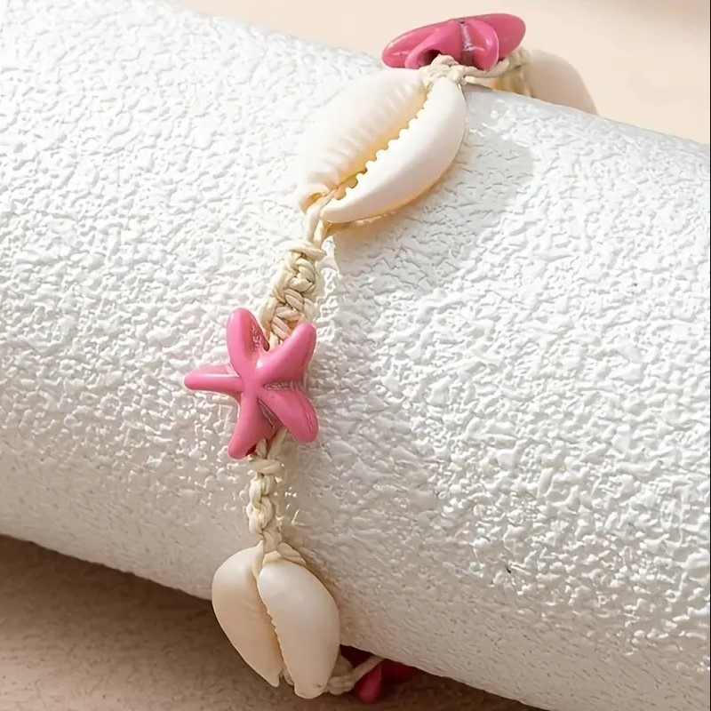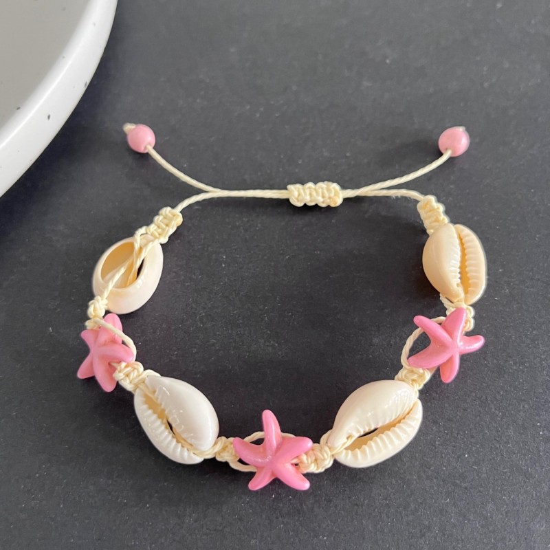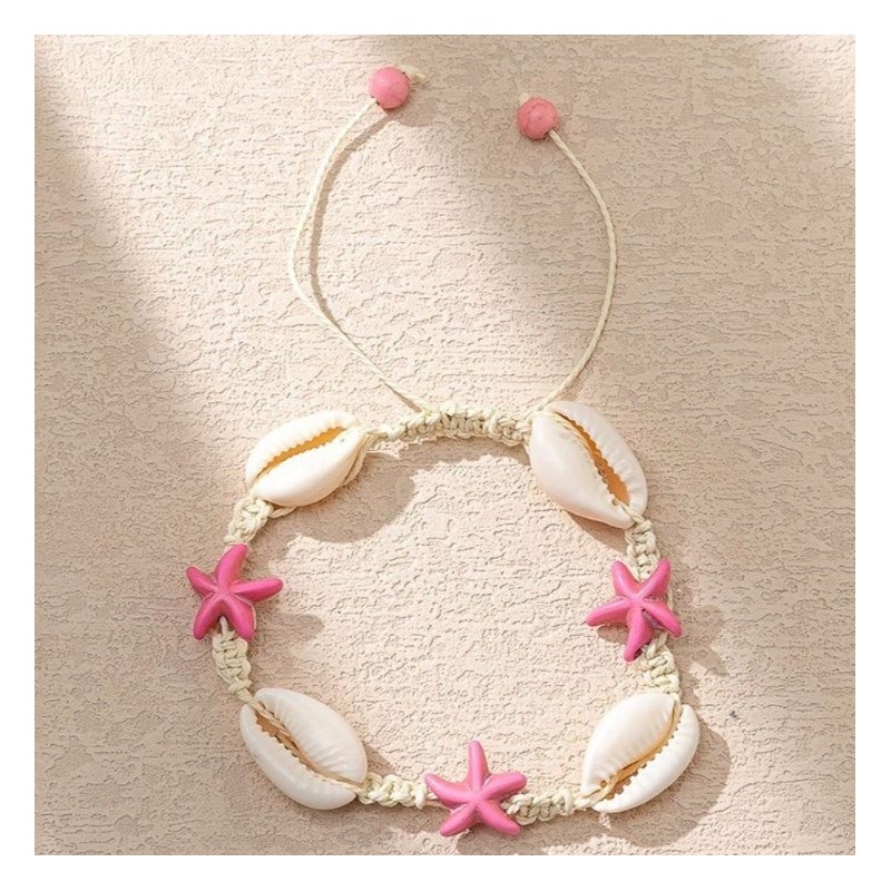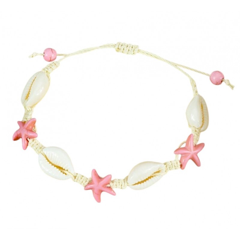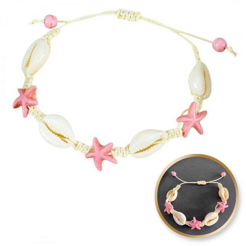 Bransoletka 2w1 na stopę i rękę, na sznurku, MUSZELKI i ROZGWIAZDY B543R