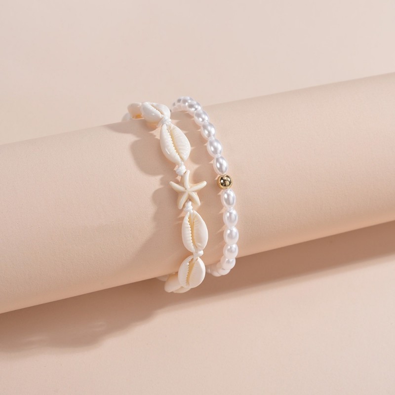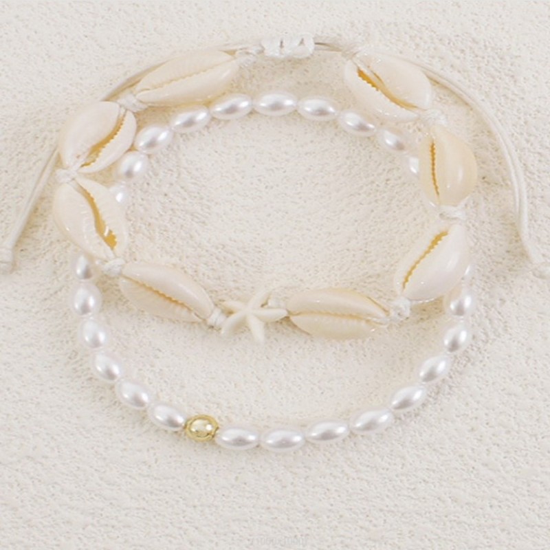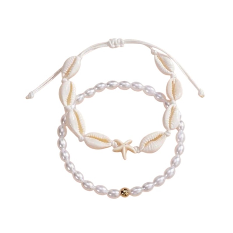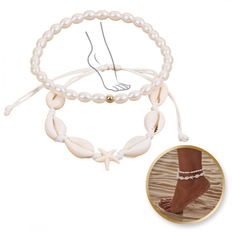 Bransoletka 2w1 na stopę MUSZELKI na sznurku, rozgwiazda PEREŁKI B544