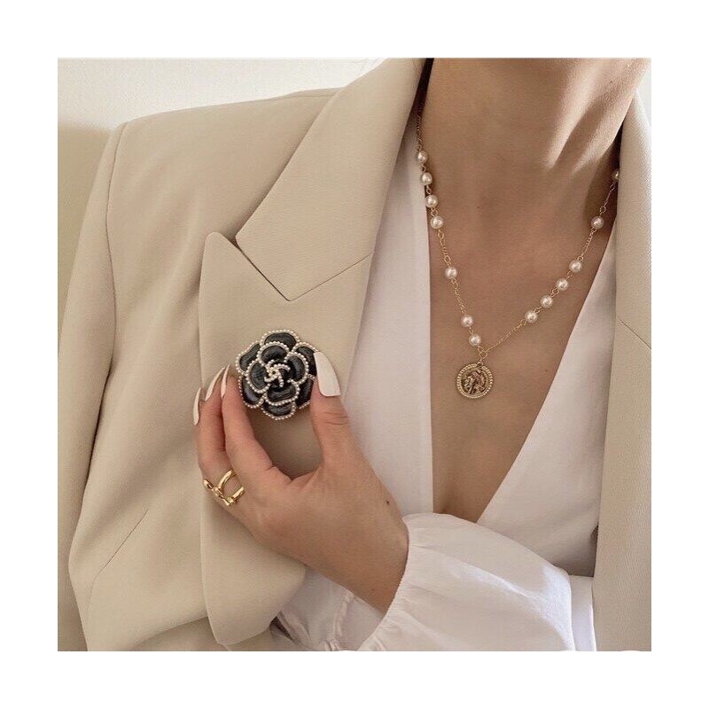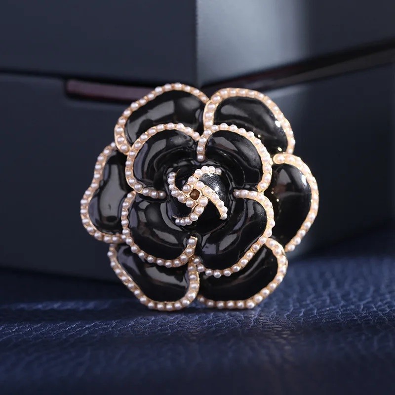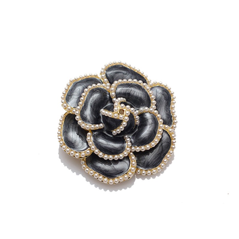 Broszka ozdobna Czarny Kwiat Kamelia z Perełkami BZ145