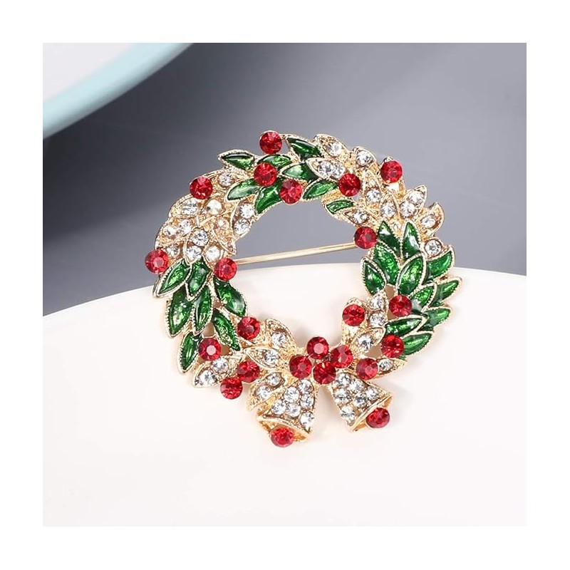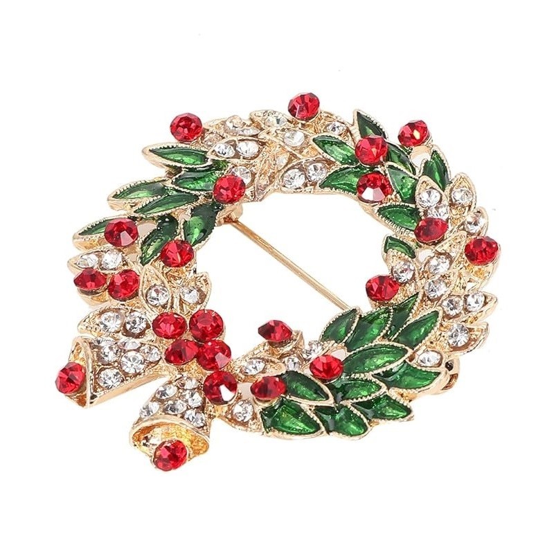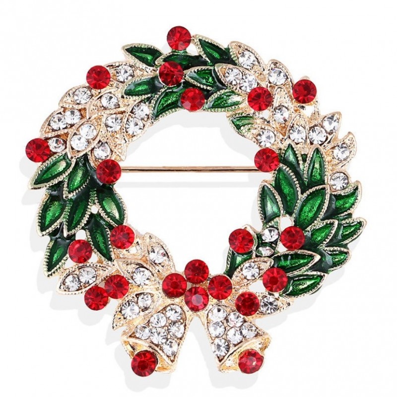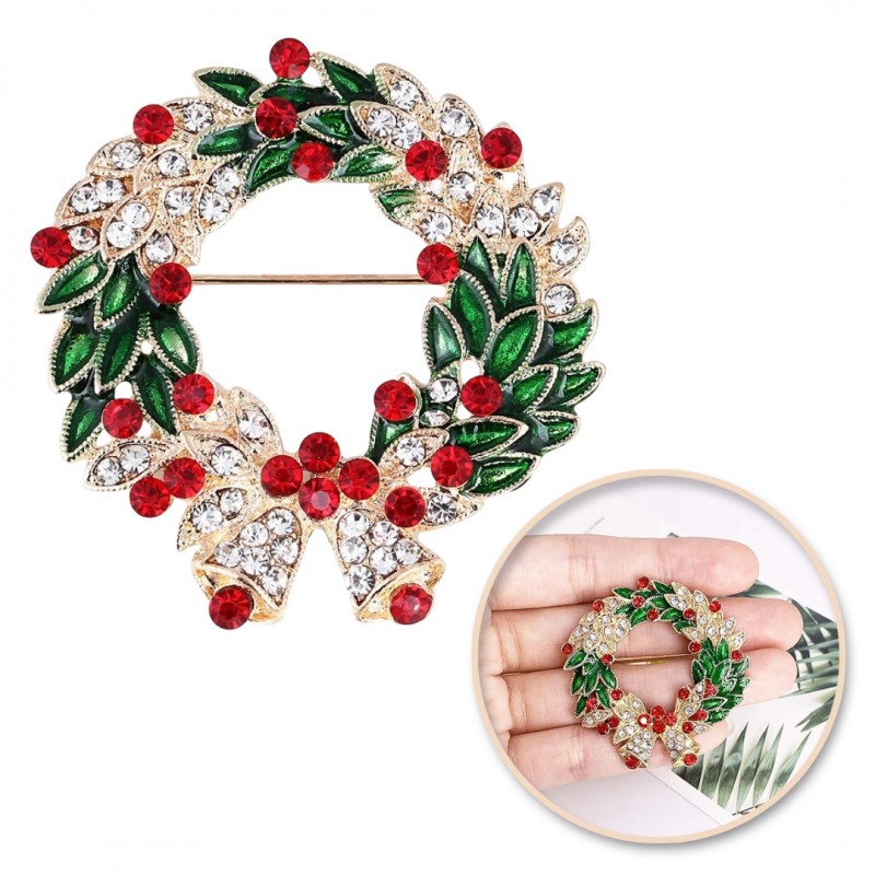 Broszka ozdobna elegancka cyrkonie, wieniec świąteczny z dzwonkami BZ185