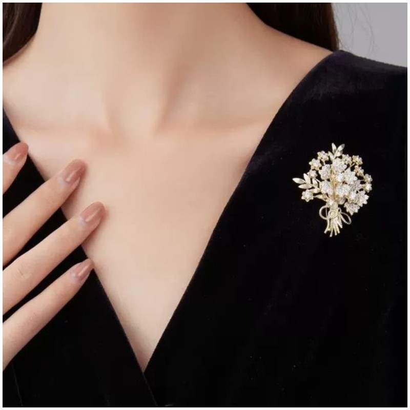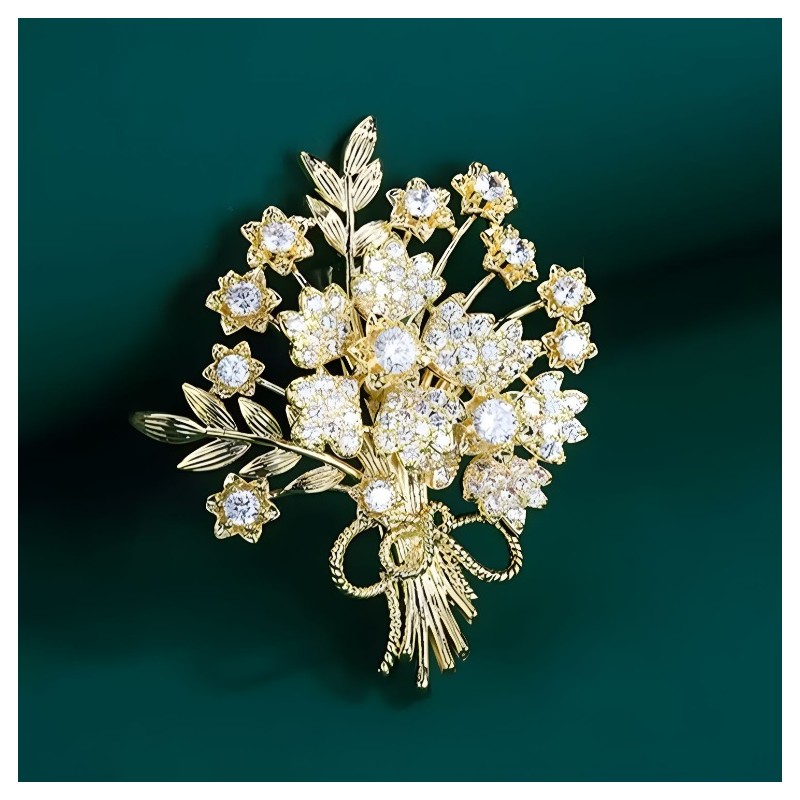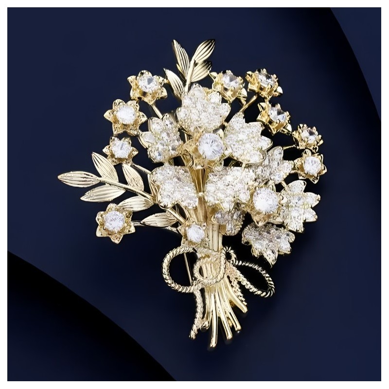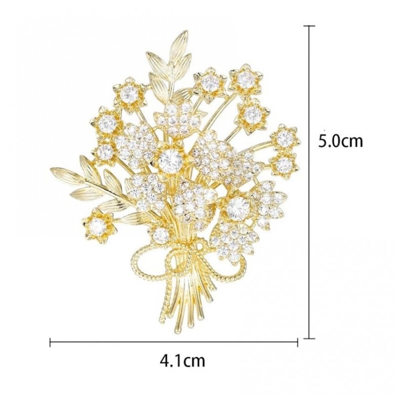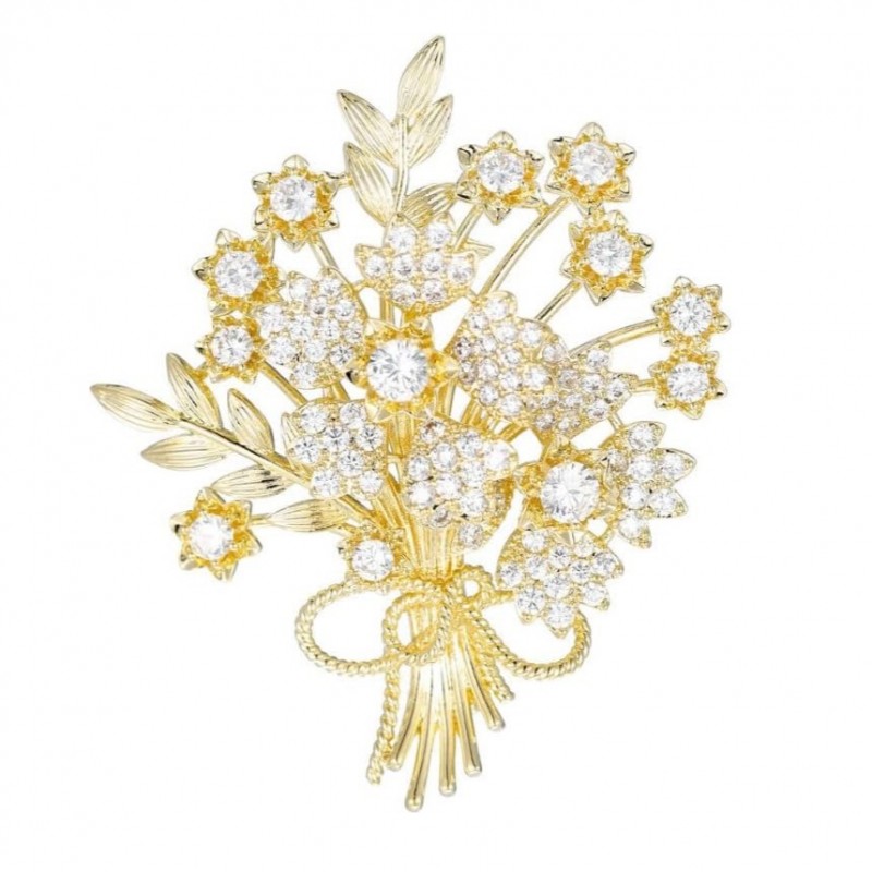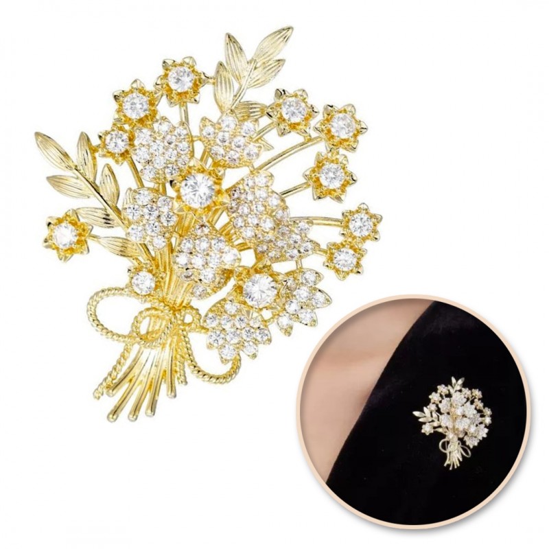 Broszka ozdobna elegancka z cyrkoniami, Bukiet kwiatów BZ184