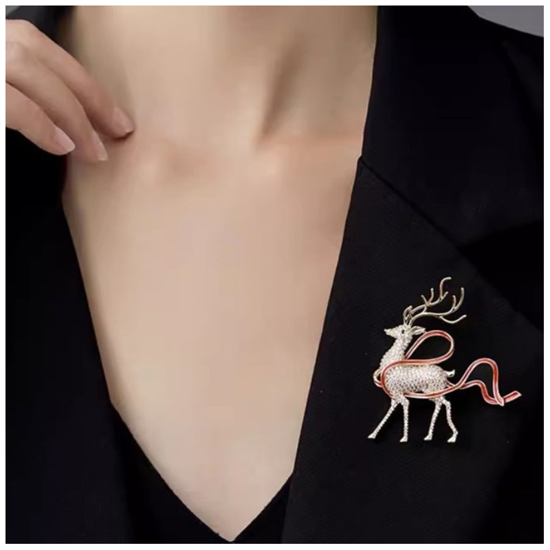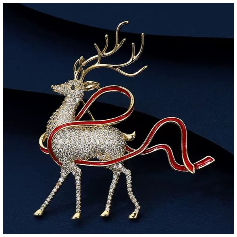 Broszka ozdobna elegancka z cyrkoniami jelonek BZ183