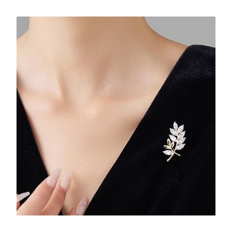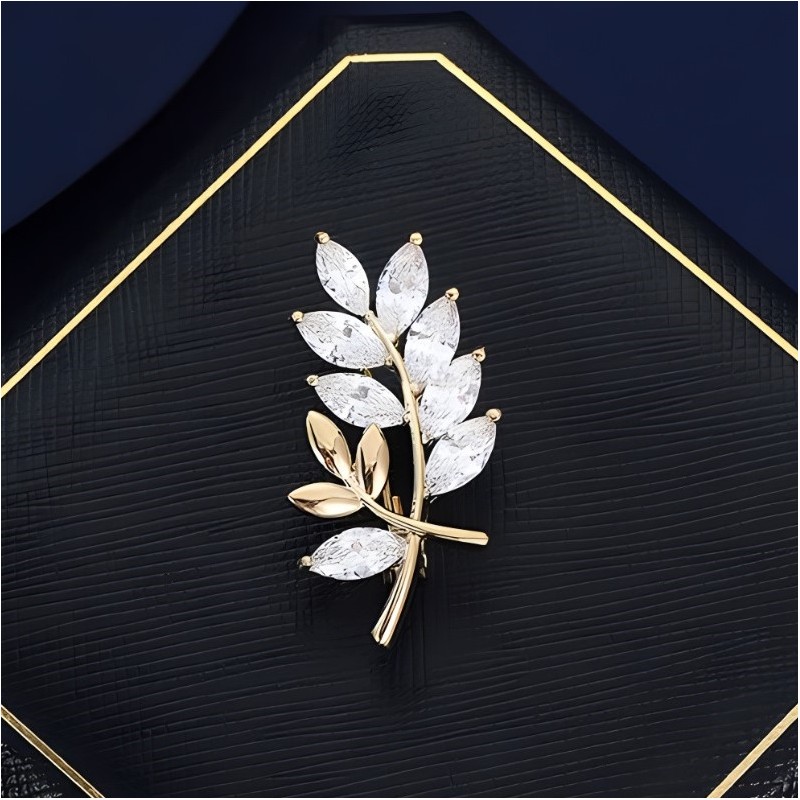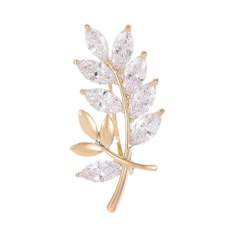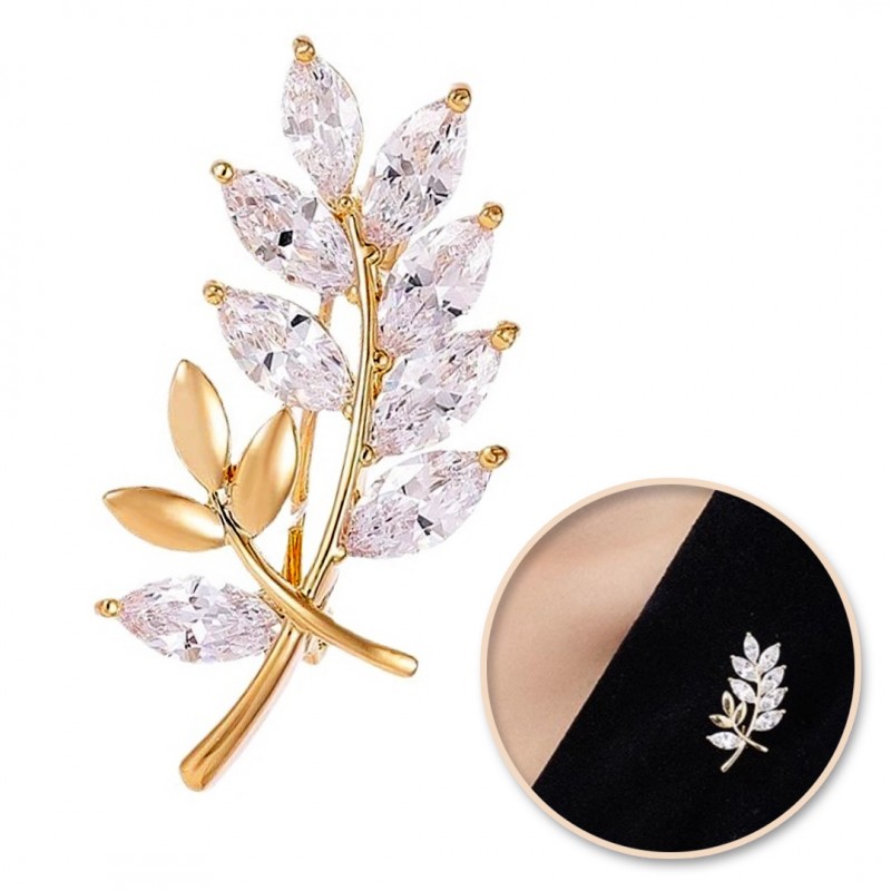 Broszka ozdobna elegancka z kryształkami, cyrkoniami Listki BZ181