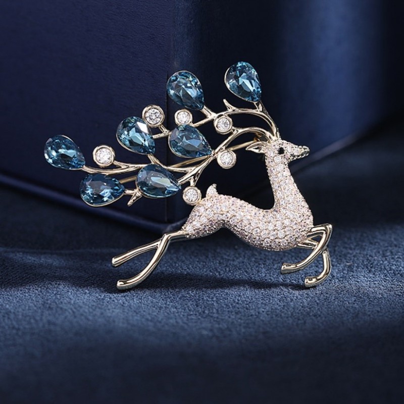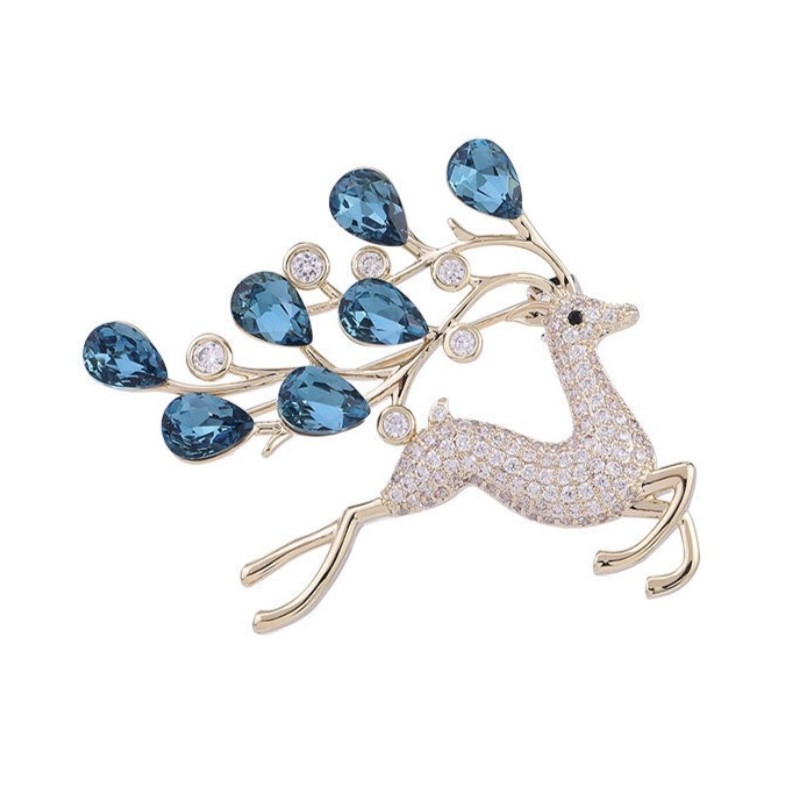 Broszka ozdobna elegancka z niebieskimi kryształkami, cyrkoniami BZ180
