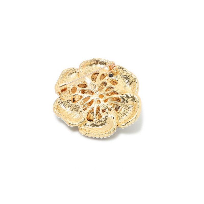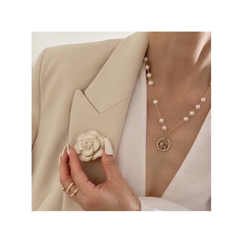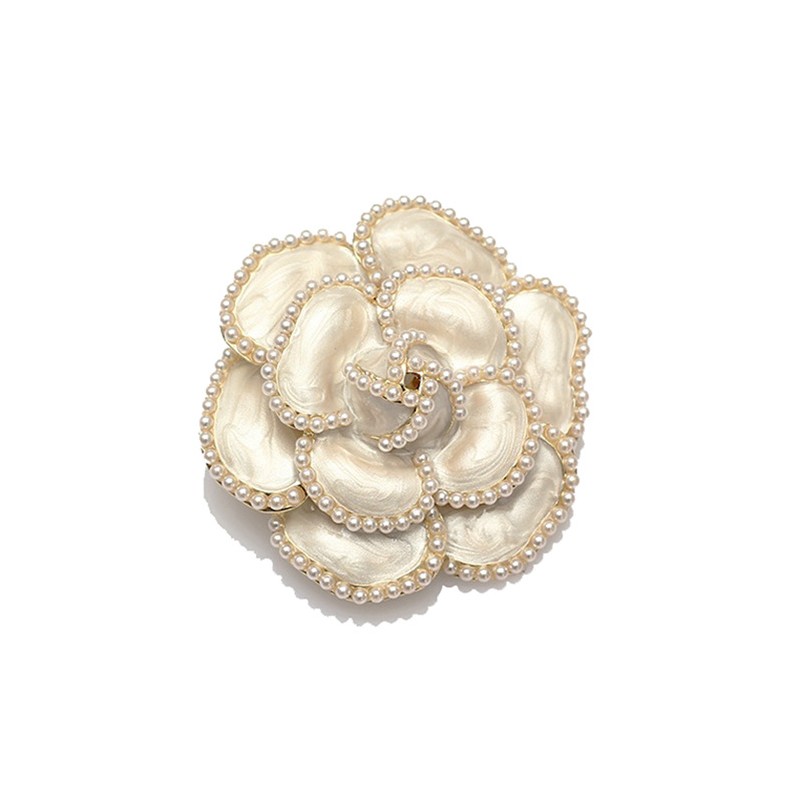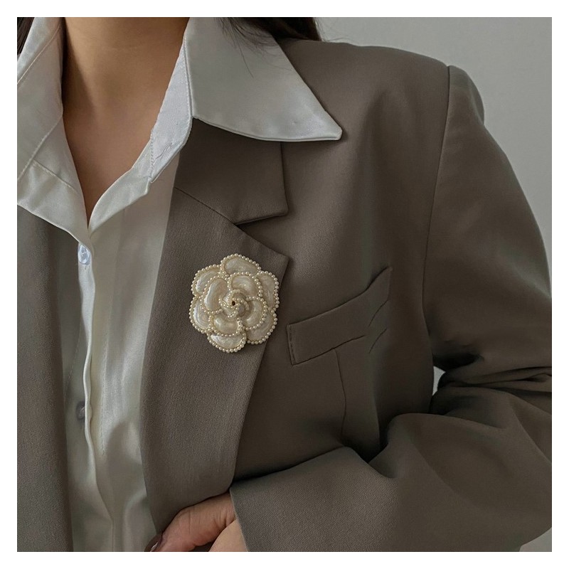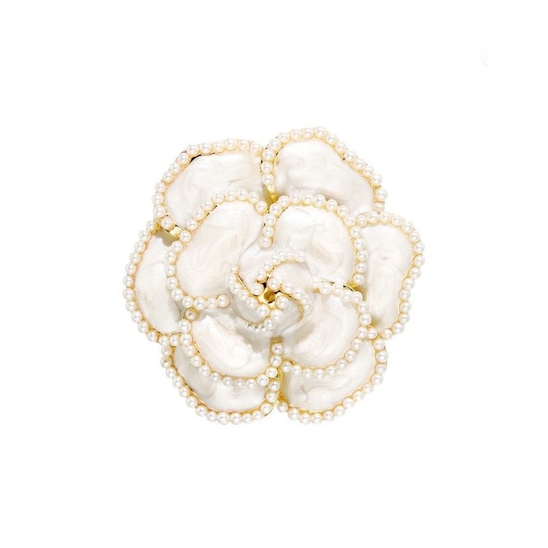 Broszka ozdobna kremowy kwiat KAMELIA z perełkami BZ144