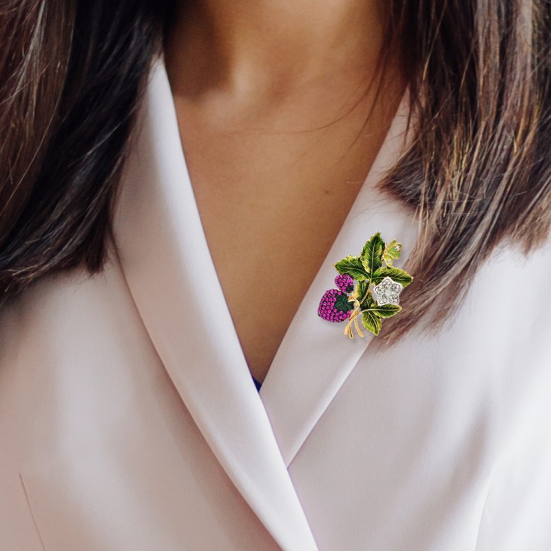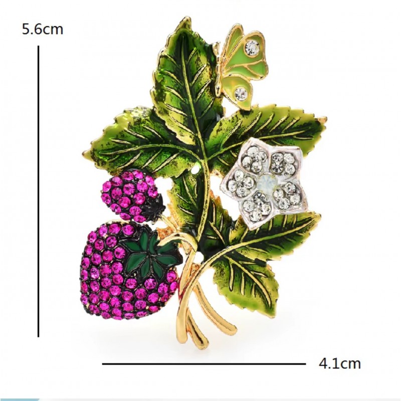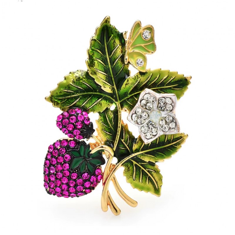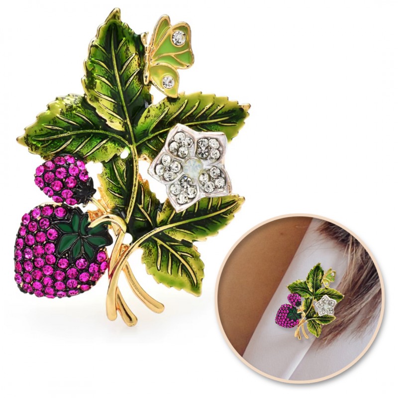 Broszka ozdobna kryształki dżetowa poziomki BZ196