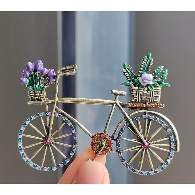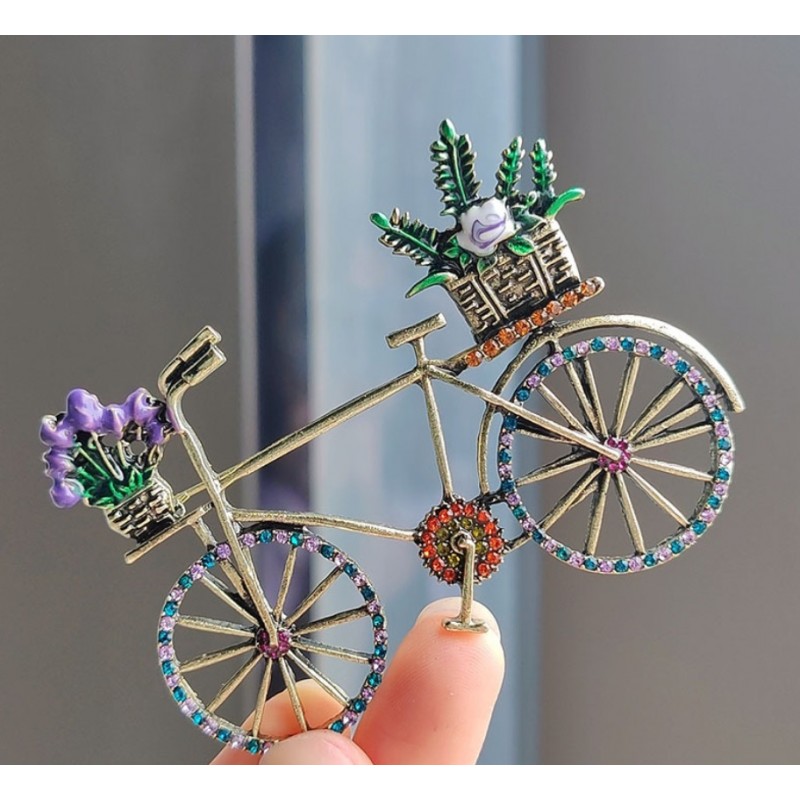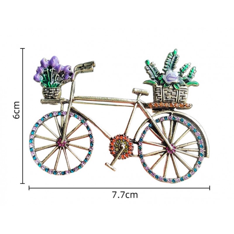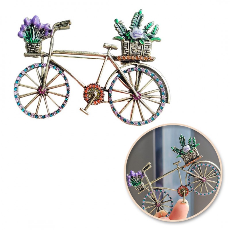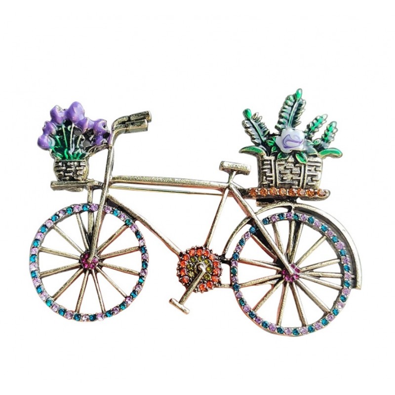 Broszka ozdobna kryształki KOLOROWY ROWER z kwiatami BZ168