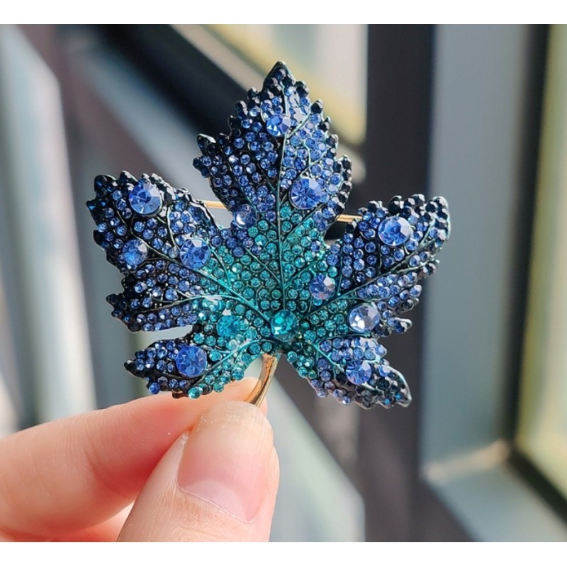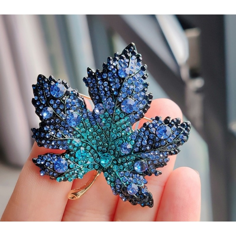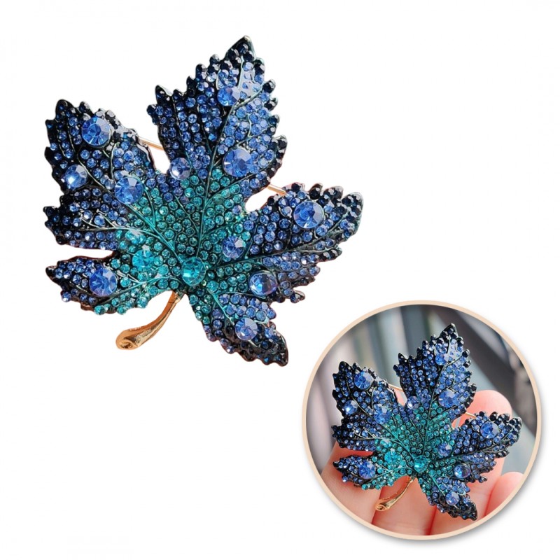 Broszka ozdobna kryształki LIŚĆ KLONU BZ164