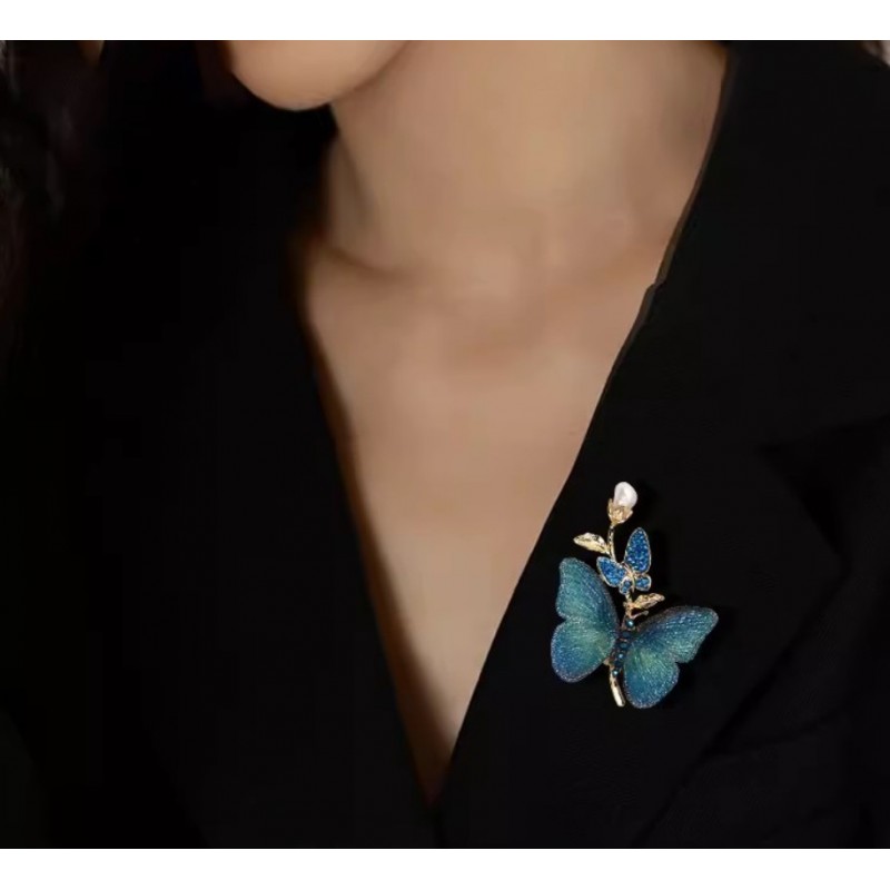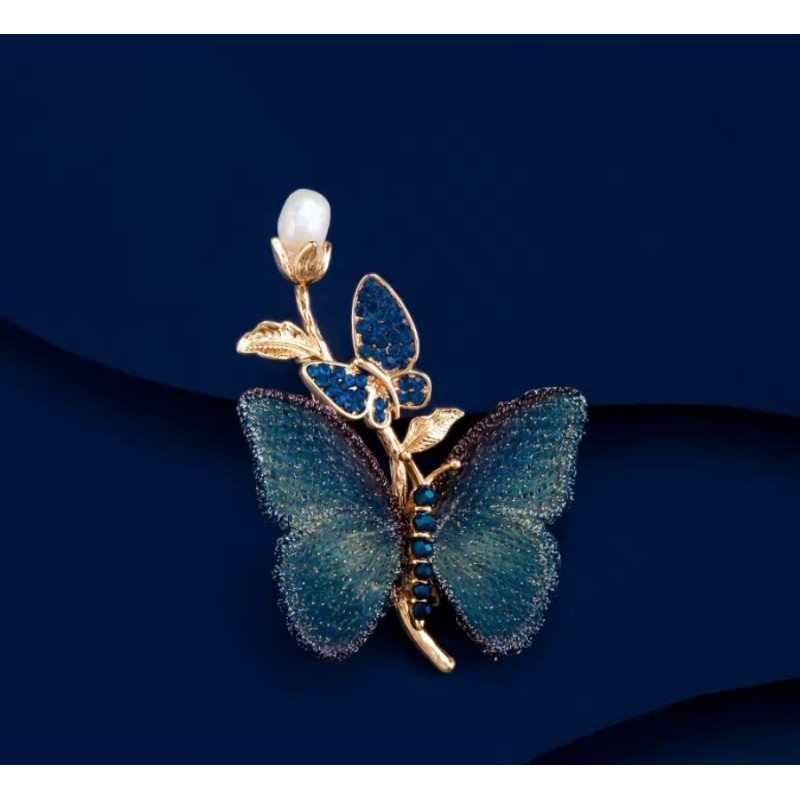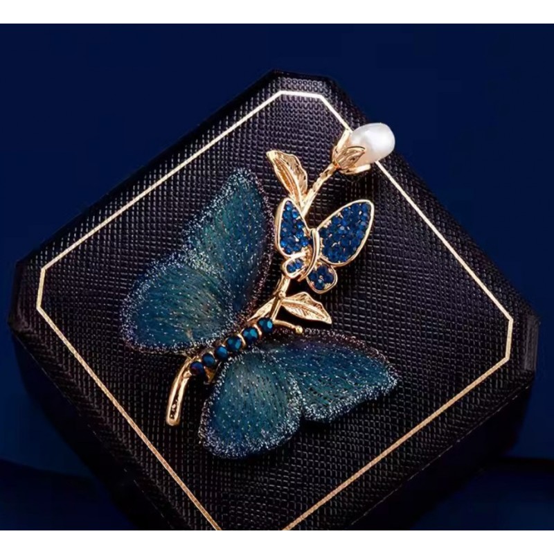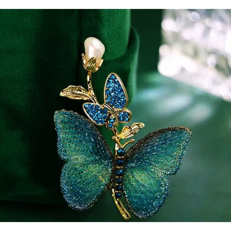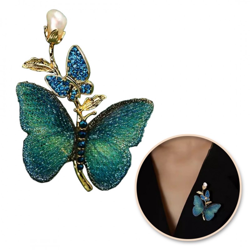 Broszka ozdobna kryształki MOTYLKI z perłą BZ177