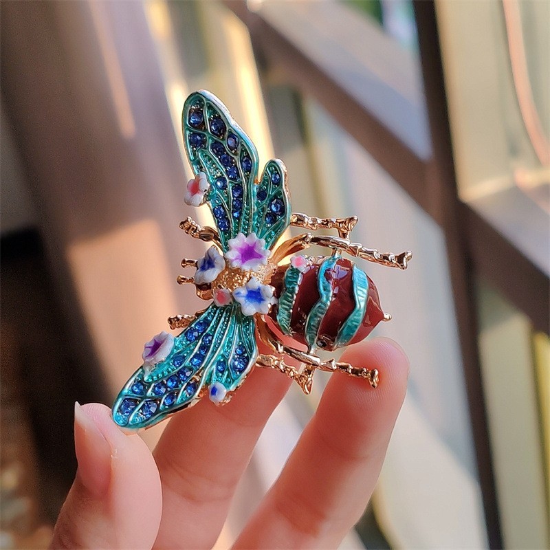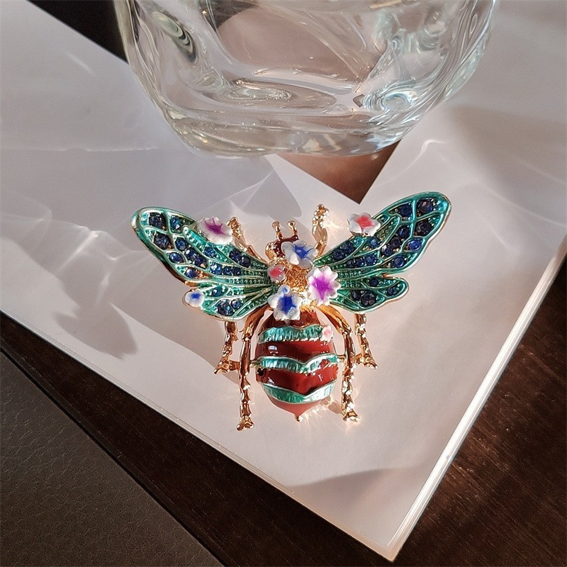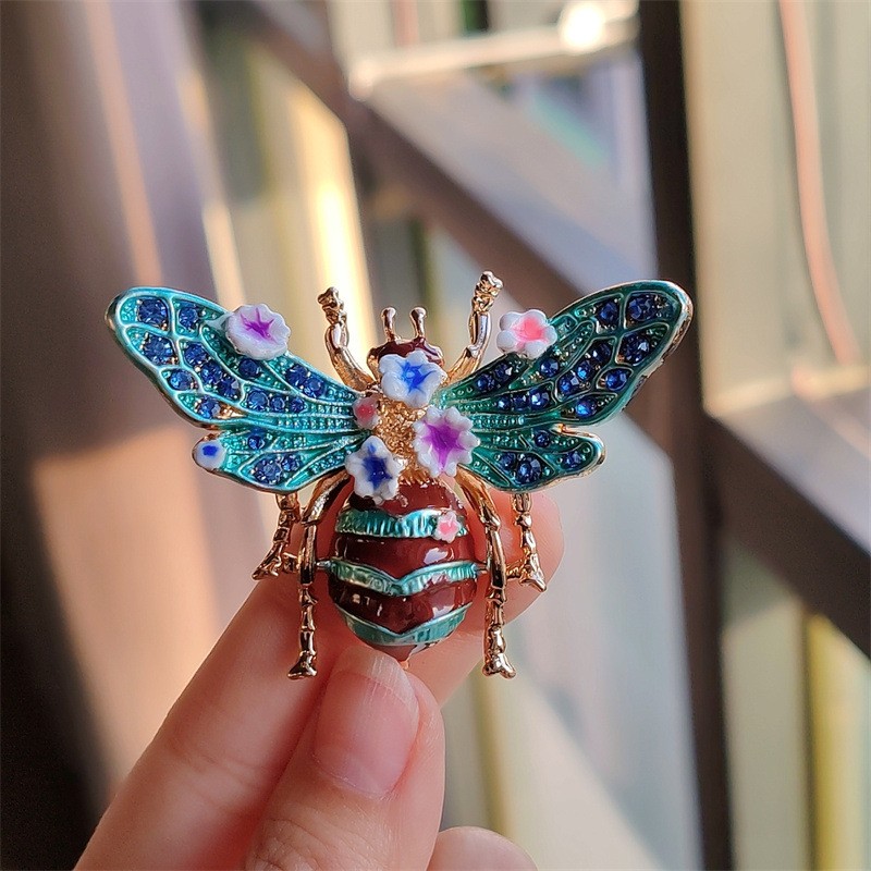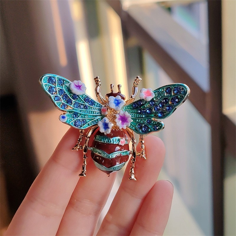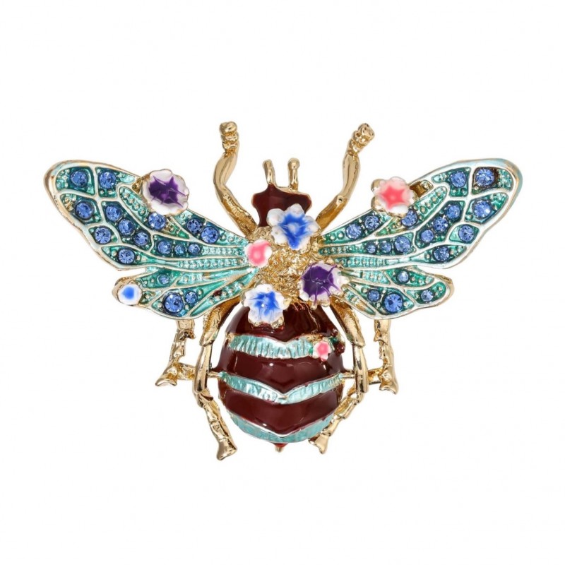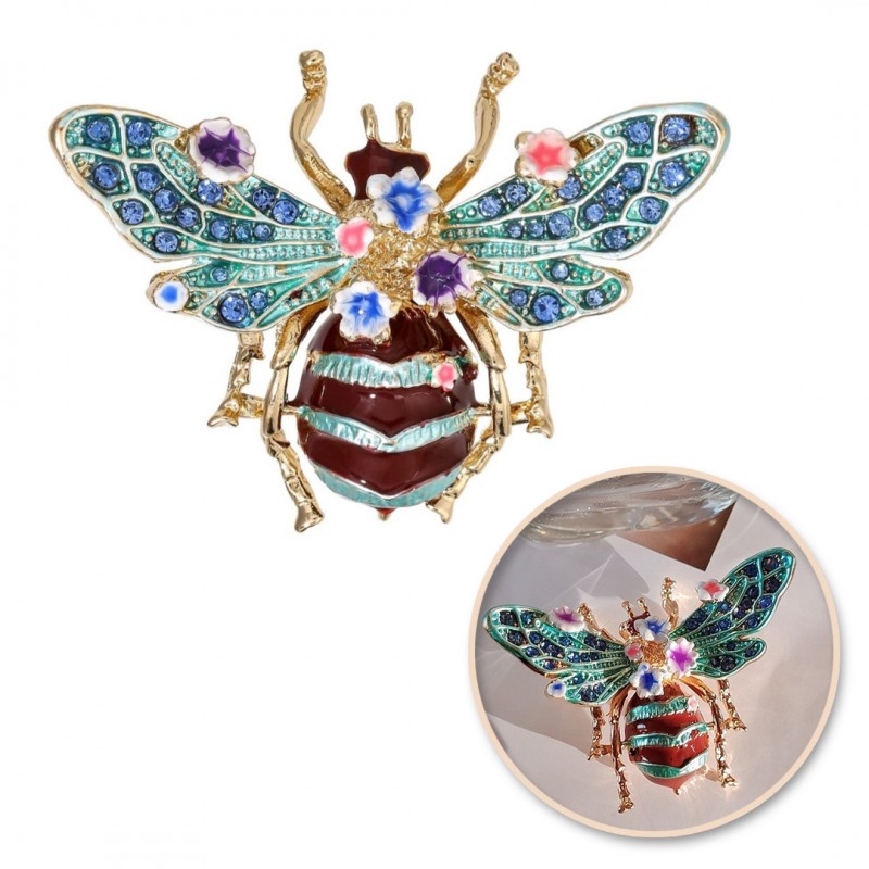 Broszka ozdobna kryształki turkusowy chrabąszcz kwiaty BZ189