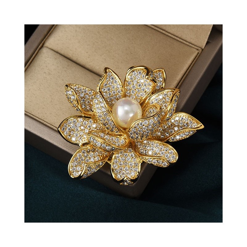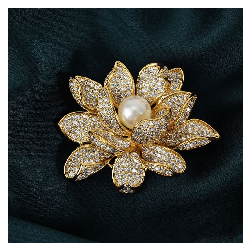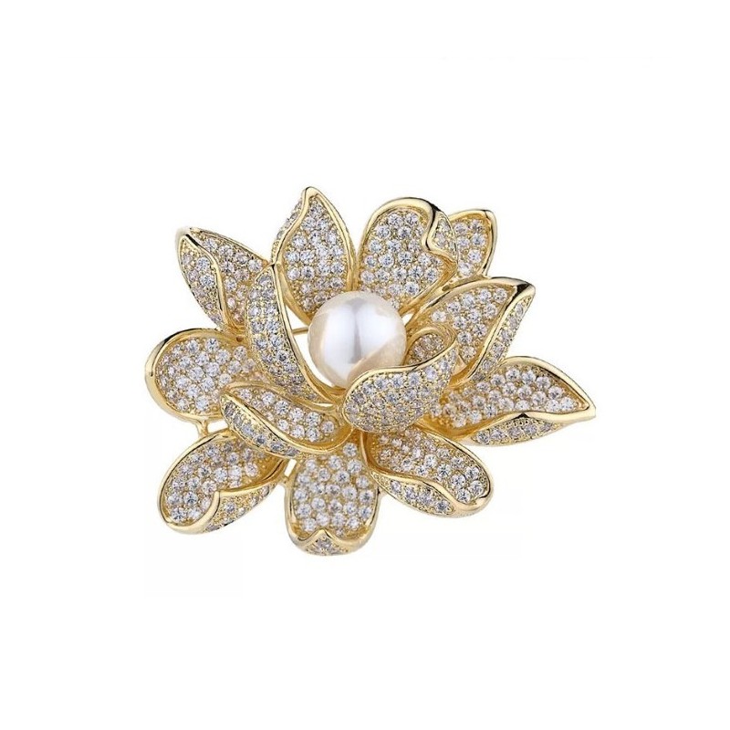 Broszka ozdobna kryształowa KWIAT PERŁA BZ143