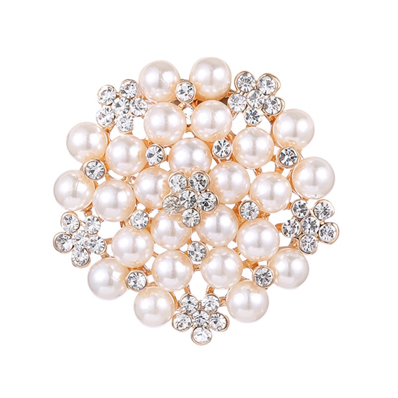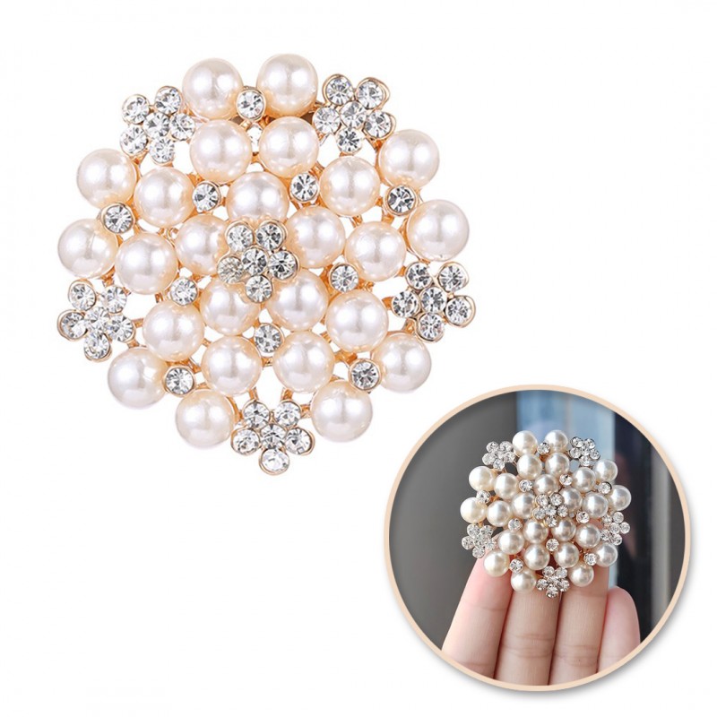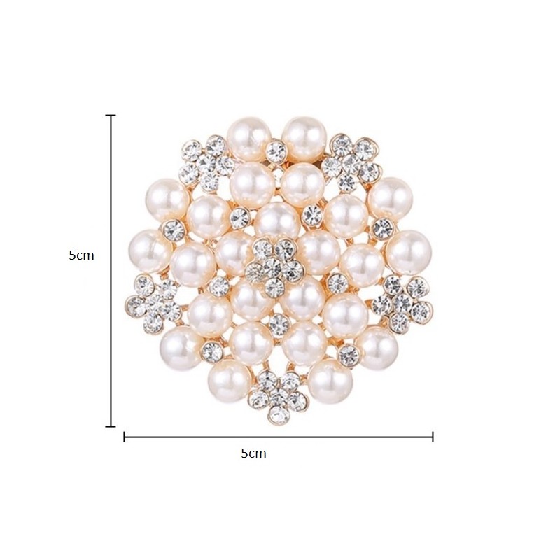 Broszka ozdobna kryształowa okrągła PERŁY I KWIATY BZ151