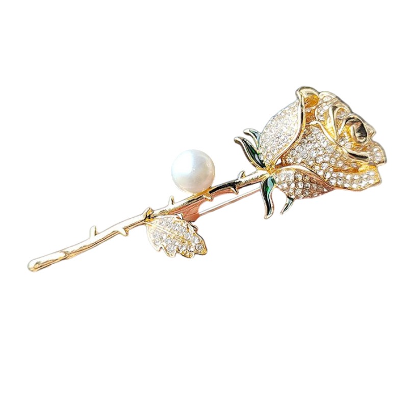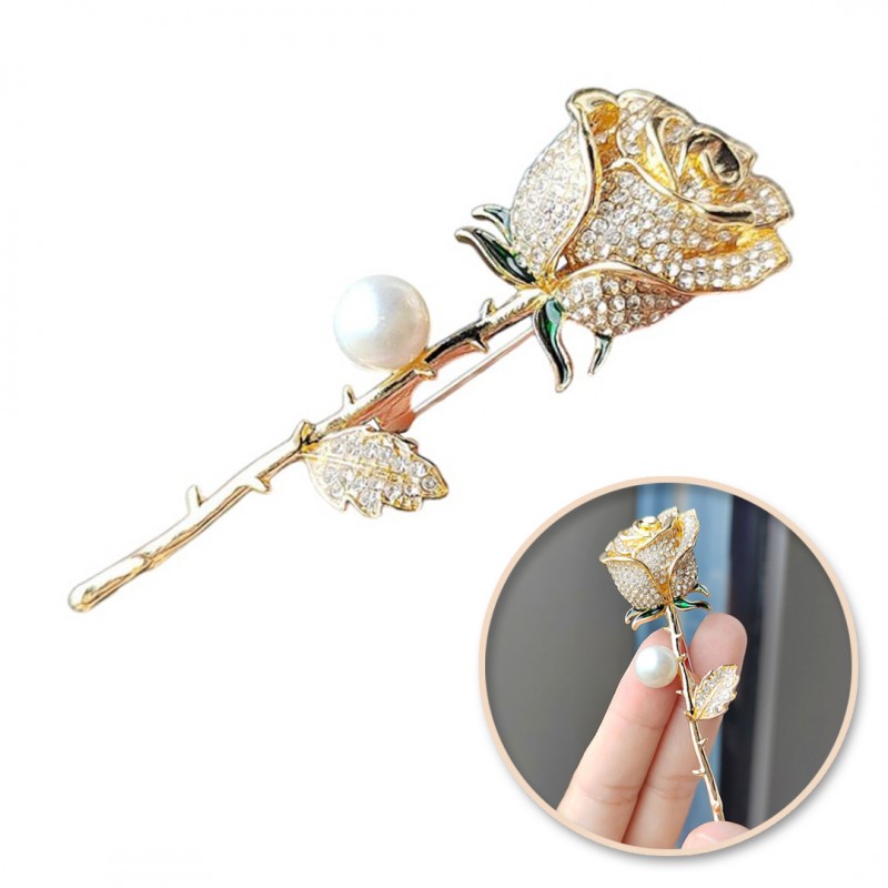 Broszka ozdobna kryształowa RÓŻA z perłą BZ152