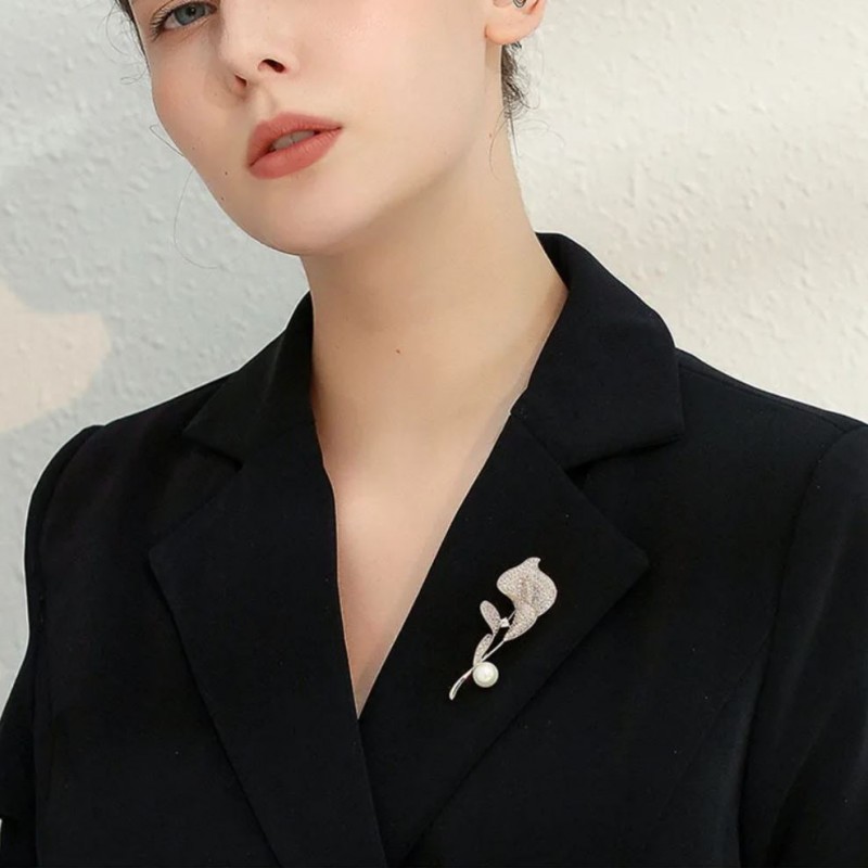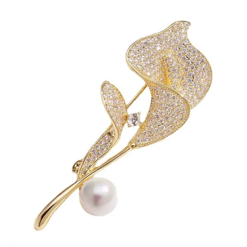 Broszka ozdobna KRYSZTAŁOWA Z PERŁĄ BZ116