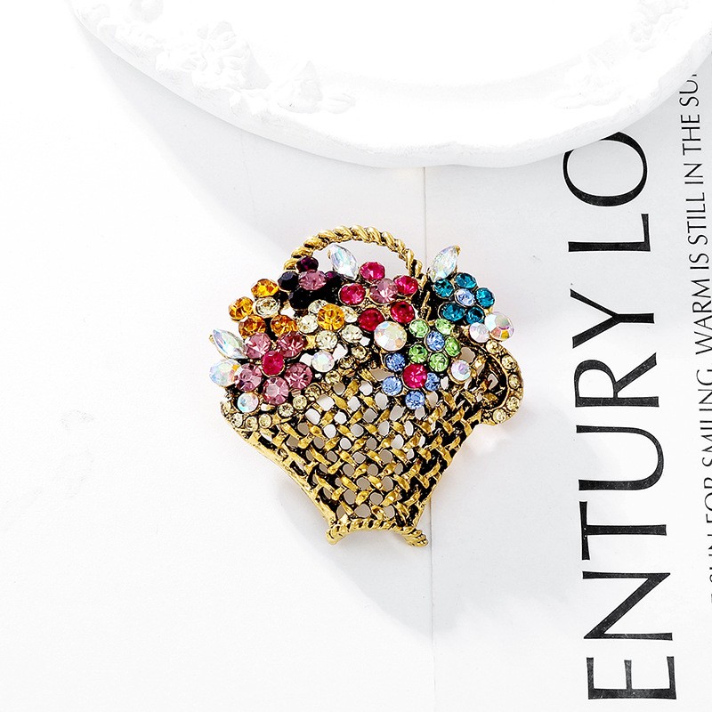 Broszka ozdobna Kryształowy Koszyczek z Kwiatami BZ139KOL