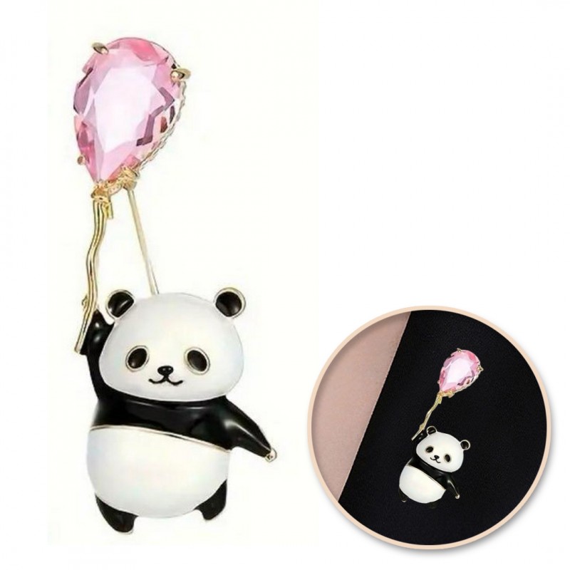 Broszka ozdobna Panda z kryształowym balonikiem BZ200