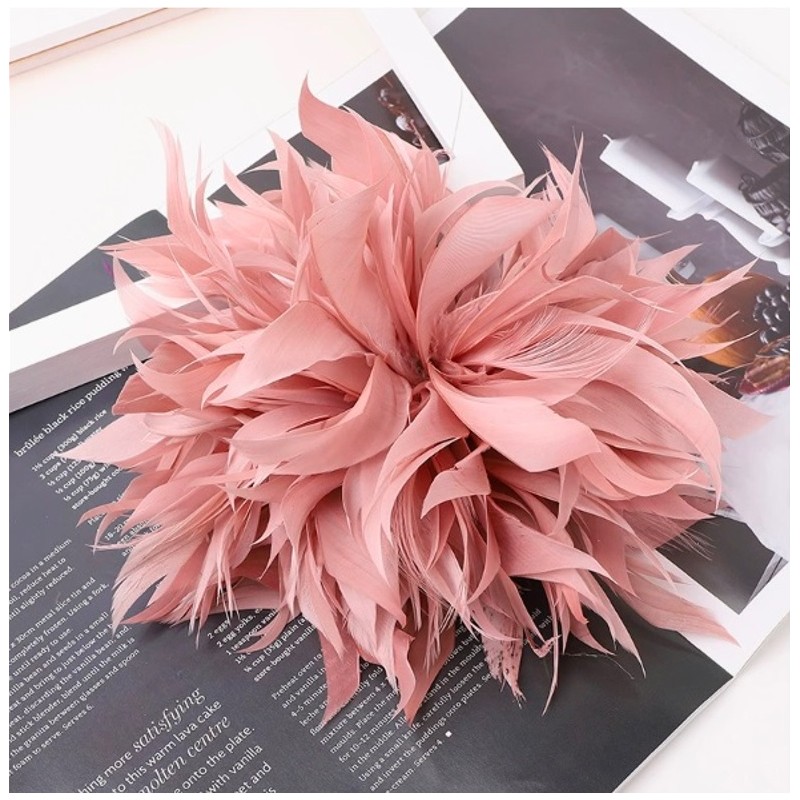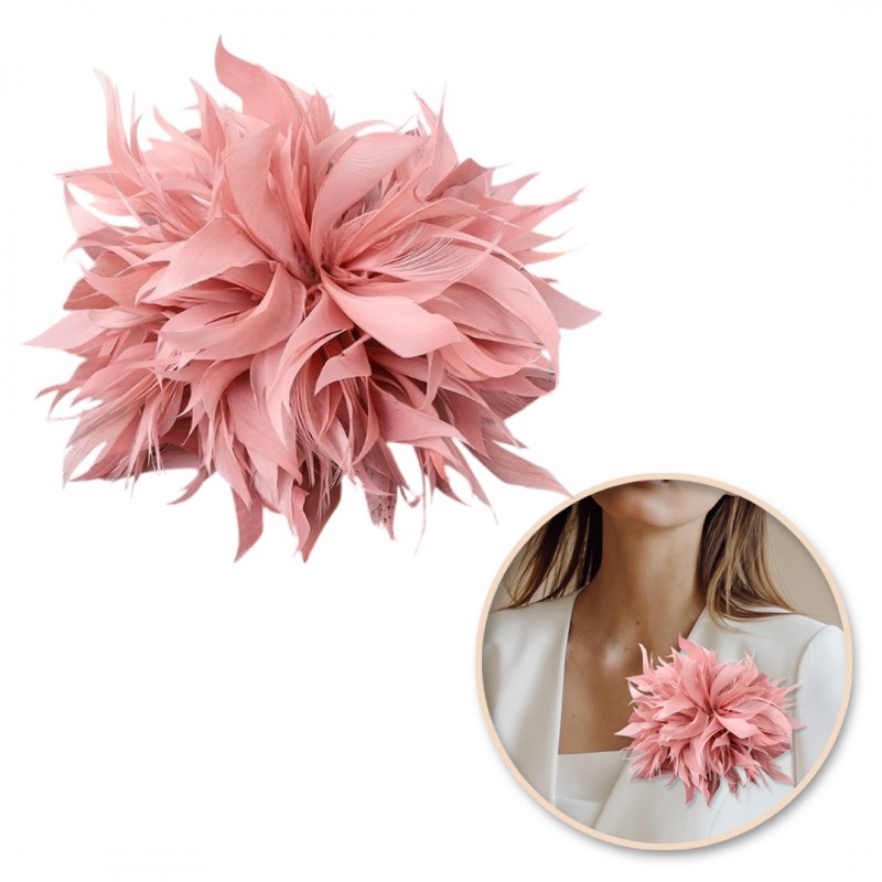 Broszka ozdobna, spinka do włosów 2w1 pióra pudrowy róż BZ207R