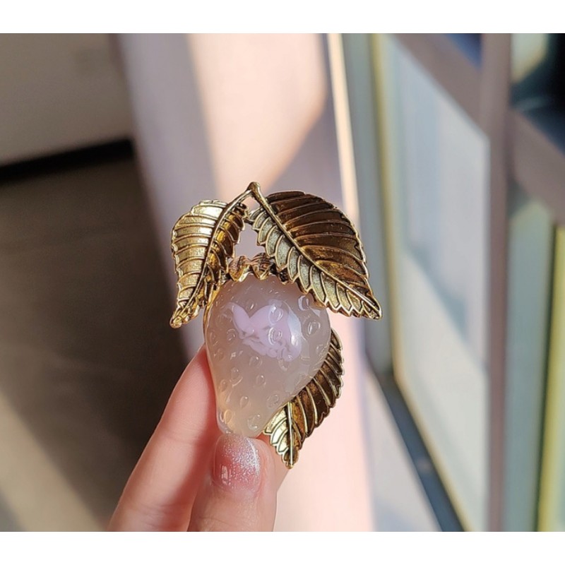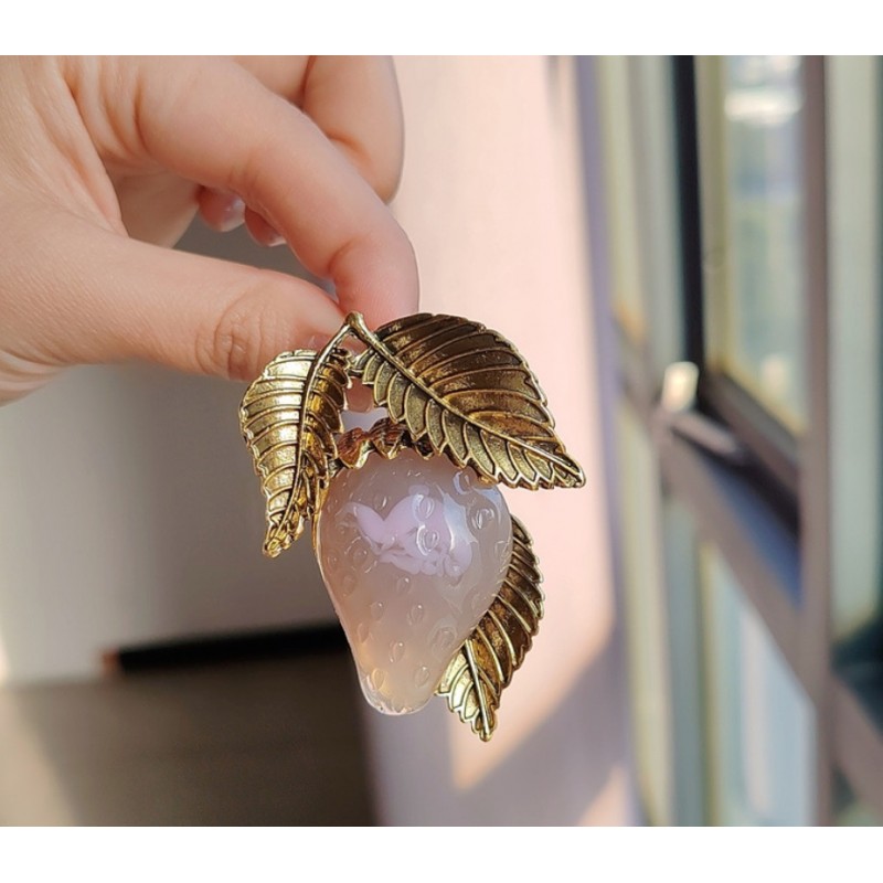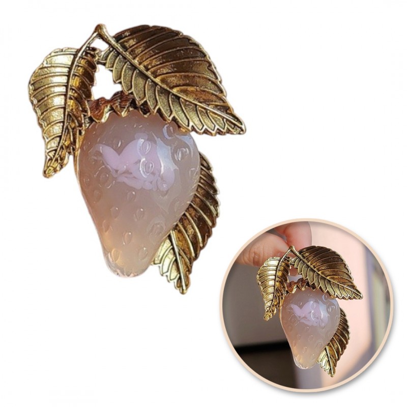 Broszka ozdobna TRUSKAWKA ZŁOTE LIŚCIE BZ172