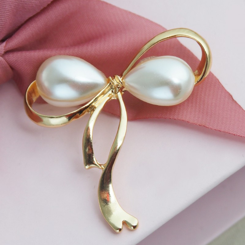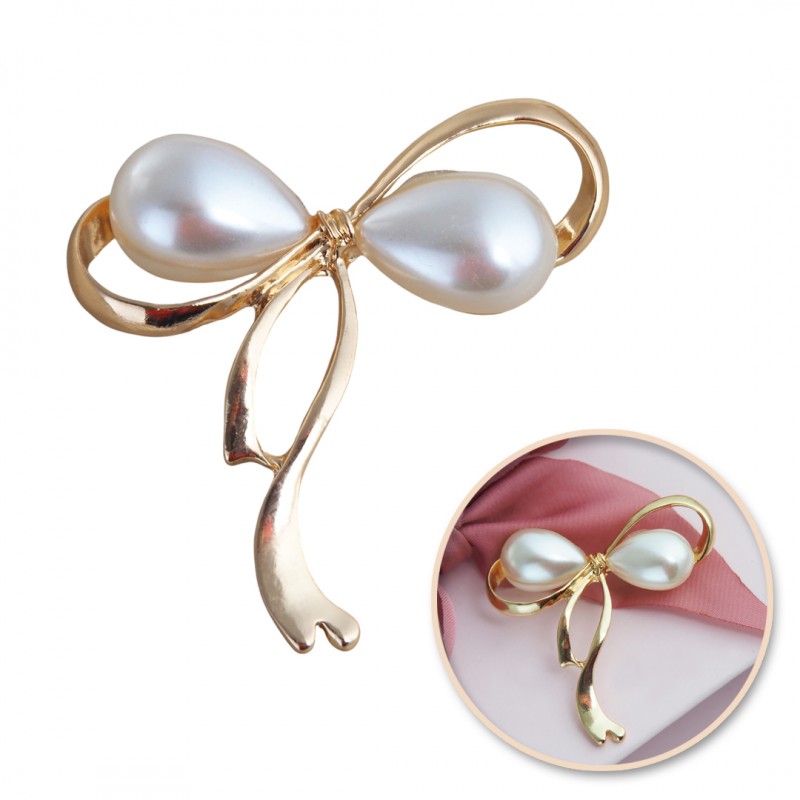 Broszka ozdobna z KOKARDKĄ i PERŁAMI BZ175