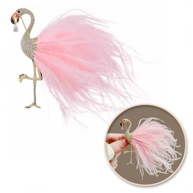 Broszka ozdobna złota z cyrkoniami, różowy Flaming BZ203