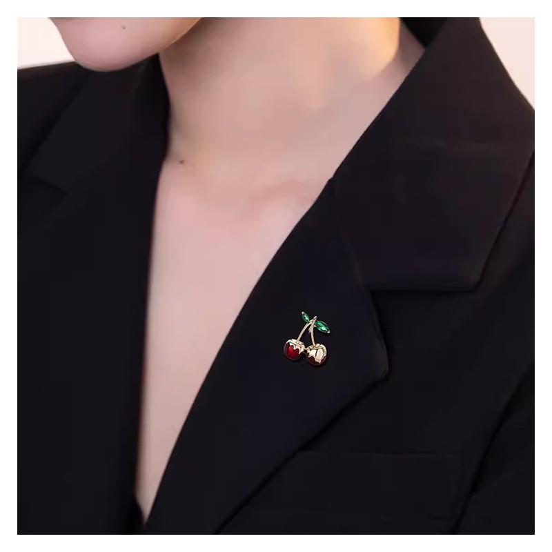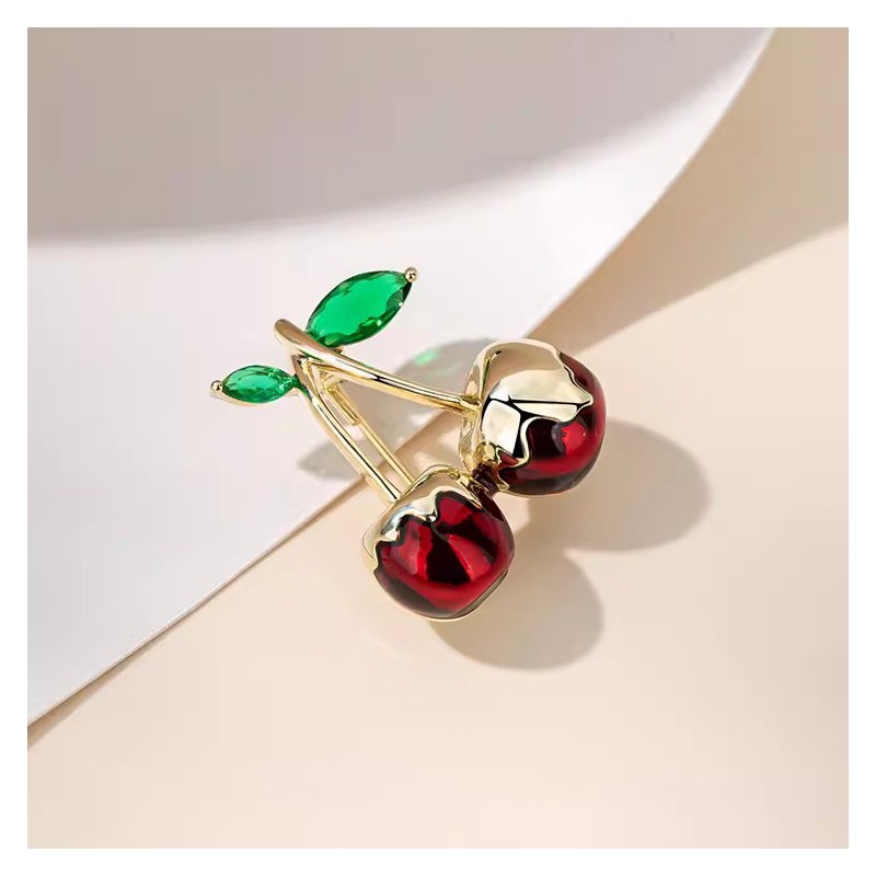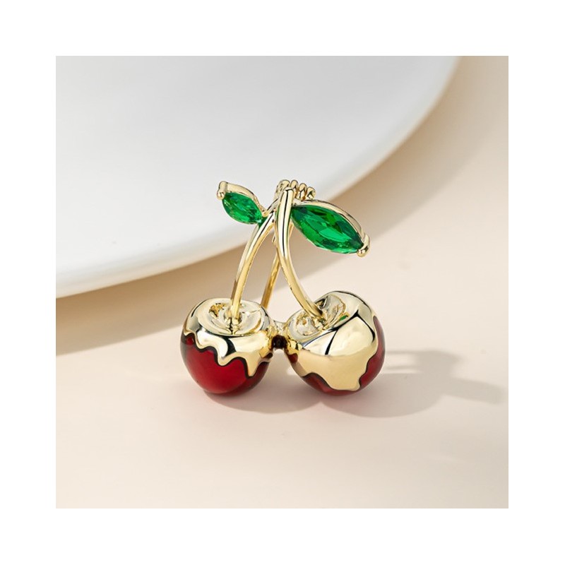 Broszka ozdobna złote soczyste WISIENKI oblane złotem BZ198