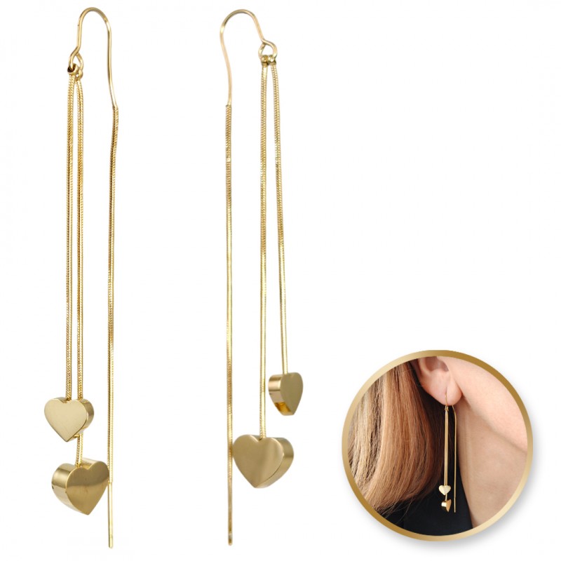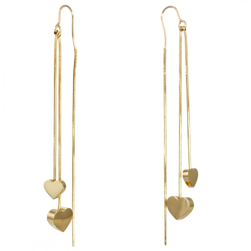 Kolczyki długie ze stali szlachetnej platerowane 14k złotem SERCA KST3378