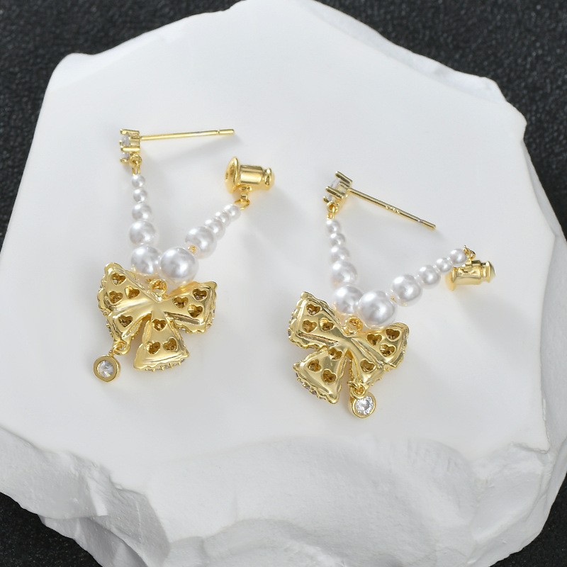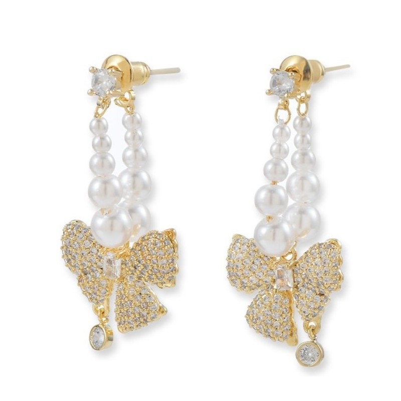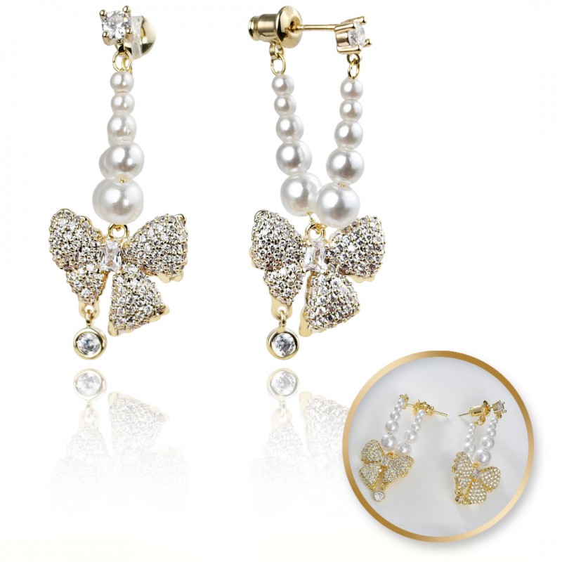 Kolczyki KOKARDY ze stali szlachetnej platerowane 14k złote, perły, sztyft S925 KST3342