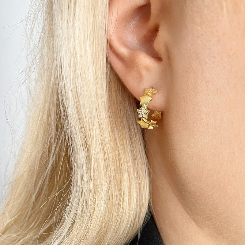 Kolczyki wiszące ze stali szlachetnej platerowanej 14k złotem gwiazdki KST3314