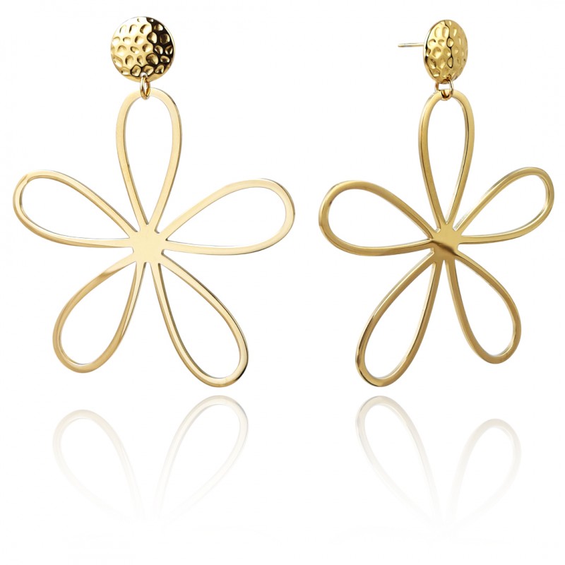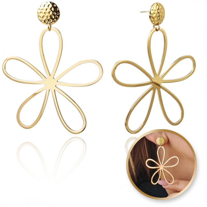 Kolczyki ze stali szlachetnej platerowane 14k złotem KWIATY cyrkonie KST3380