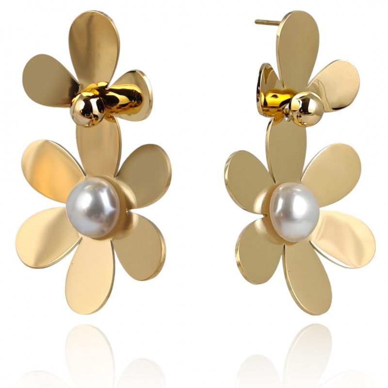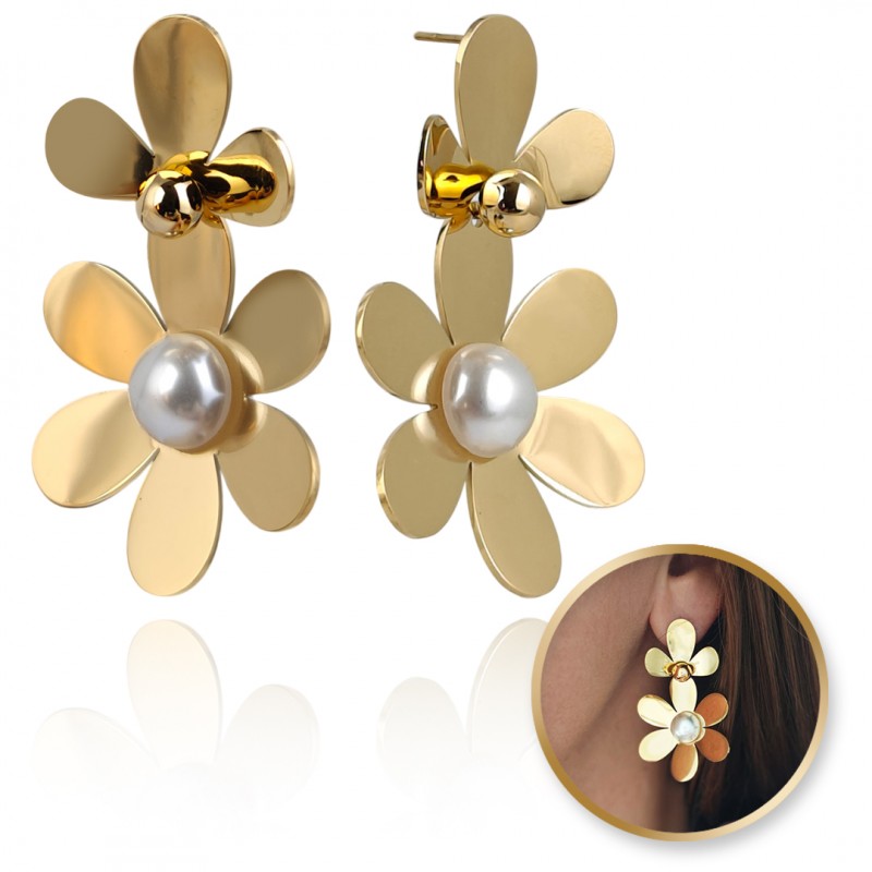 Kolczyki ze stali szlachetnej platerowane 14k złotem KWIATY perły KST3381
