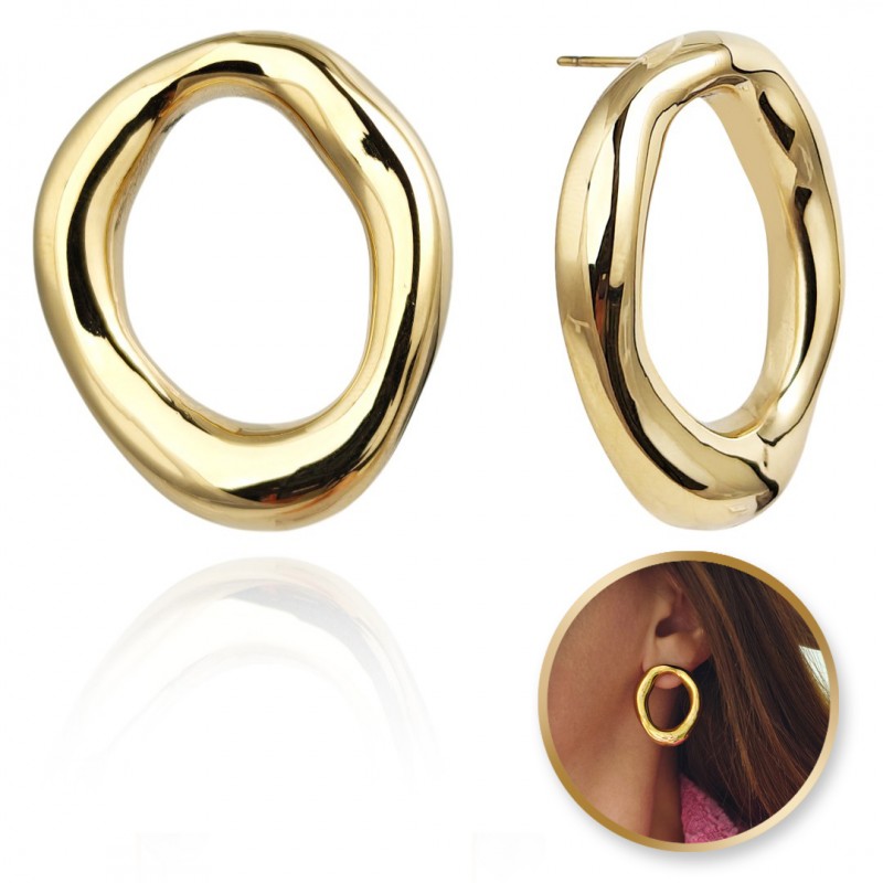 Kolczyki ze stali szlachetnej platerowane 14-karatowym złotem, sztyft