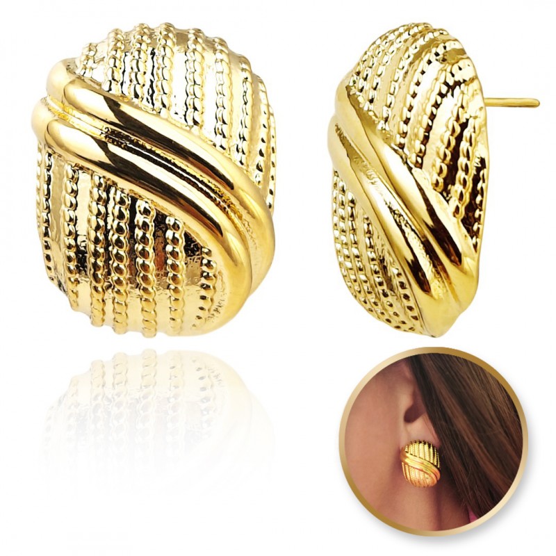 Kolczyki ze stali szlachetnej platerowane 14-karatowym złotem, sztyft