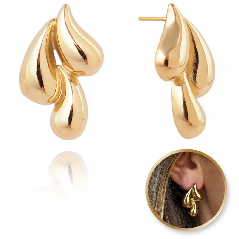 Kolczyki ze stali szlachetnej platerowane 14-karatowym złotem, sztyft Eleganckie i stylowe kolczyki. WYMIARY: