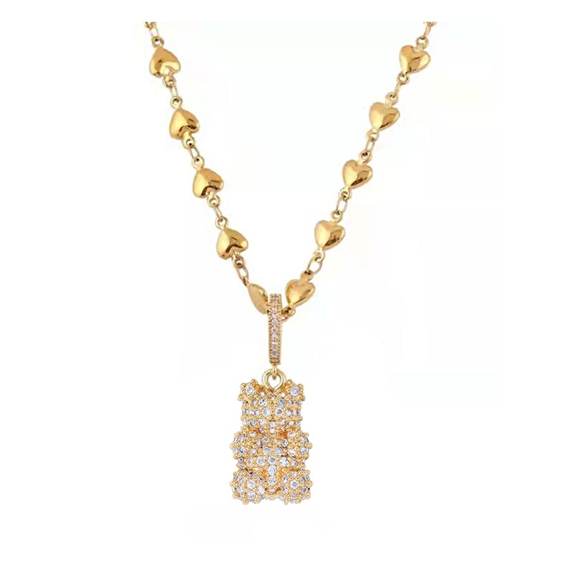 Naszyjnik Miś stal szlachetna pozłacana 14k złotem NST1592KR
