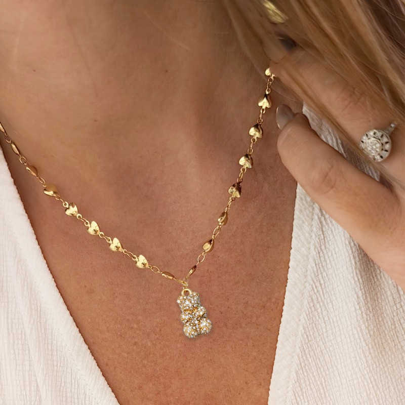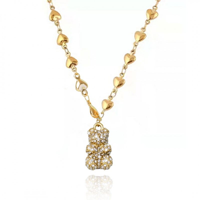 Naszyjnik Miś stal szlachetna pozłacana 14k złotem NST1627