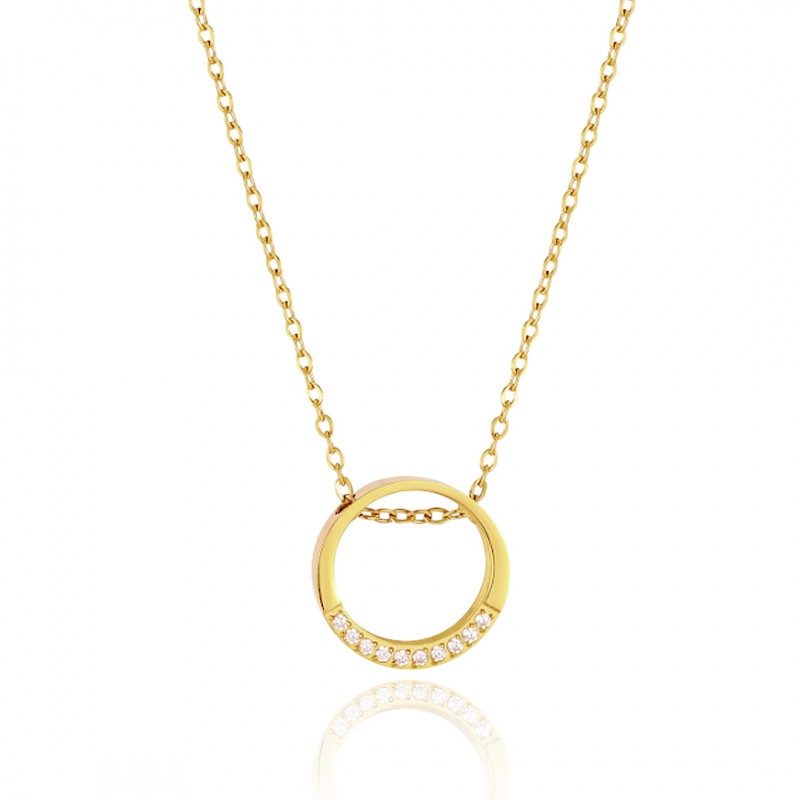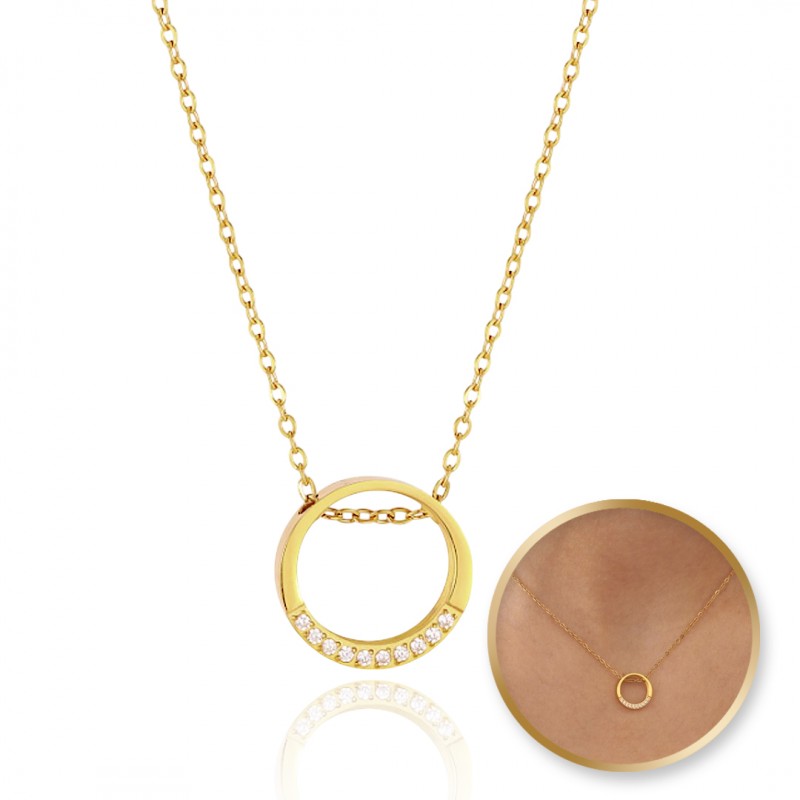 Naszyjnik stal szlachetna pozłacana 14k złotem, elegancki, KOŁO cyrkonie NST2150