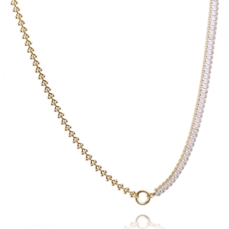Modny naszyjnik ze stali szlachetnej platerowanej 14 – karatowym złotem Świetnie pasuje do eleganckich, jak również do codziennych stylizacji.