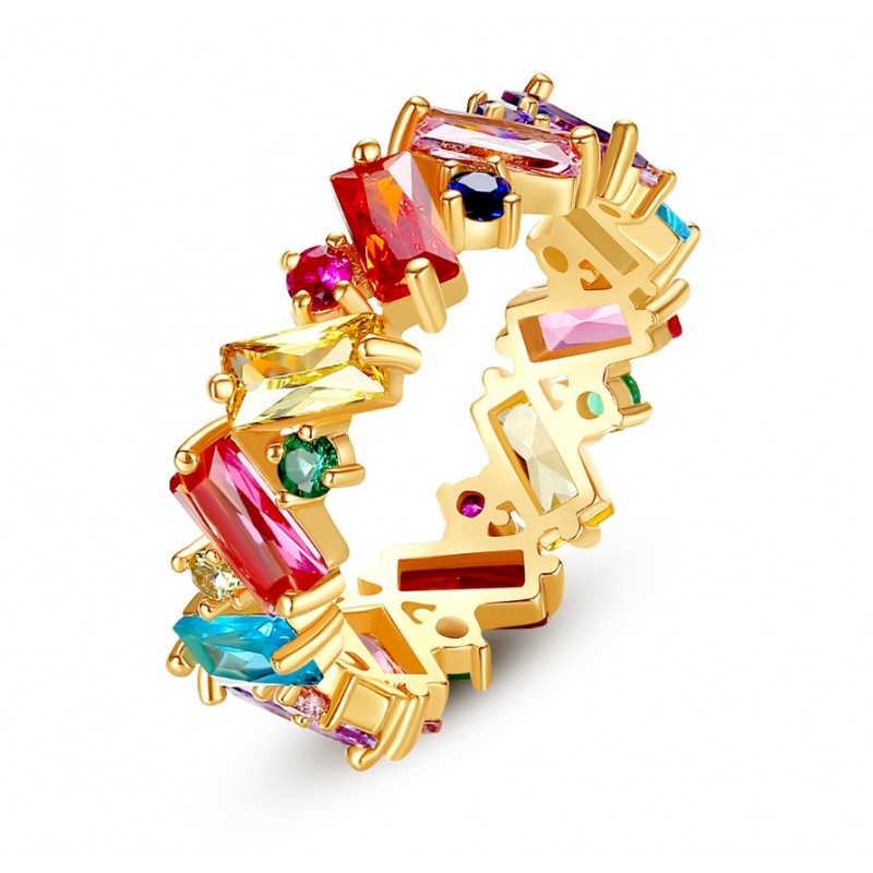 Pierścionek pozłacany cyrkonie kolor stal chirurgiczna platerowana złotem PST859KOL, Rozmiar pierścionków: US7 EU14
