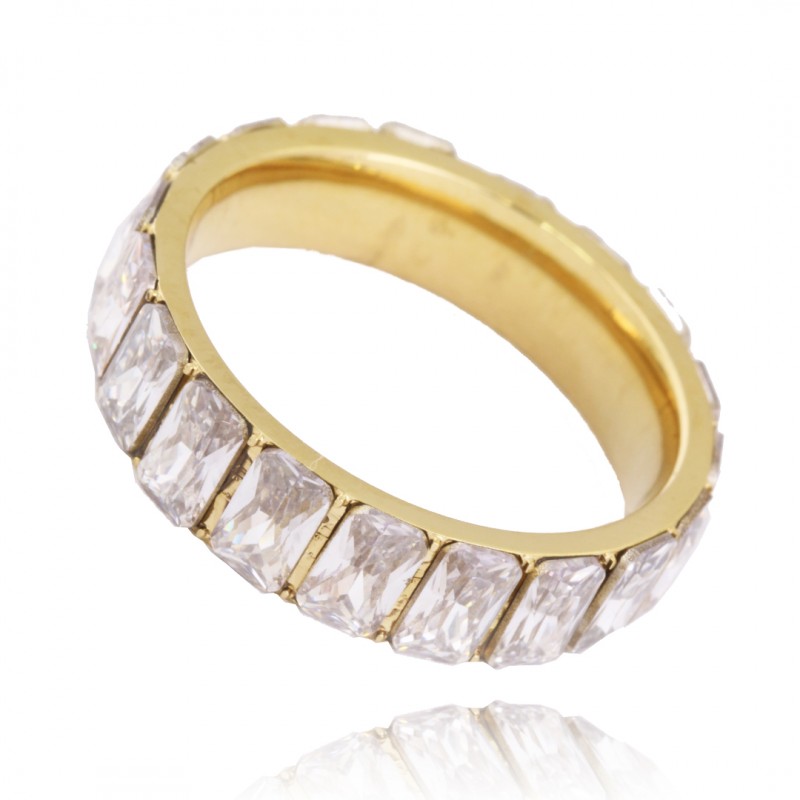 Pierścionek platerowany 14-karatowym złotem Kolor: złoty STAL NIERDZEWNA jest odporna na warunki atmosferyczne, nie ulega korozji, nie rdzewieje, nie śniedzieje.
