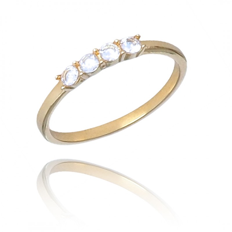 PLATEROWANY 14 karatowym złotem pierścionek z dużymi cyrkoniami. Kolor: złoty