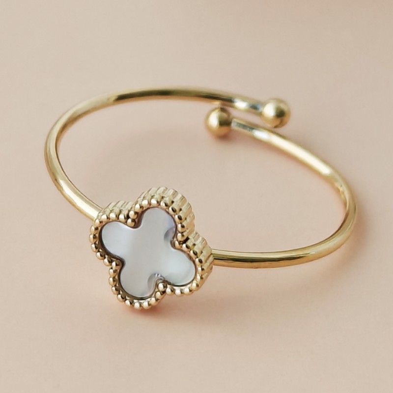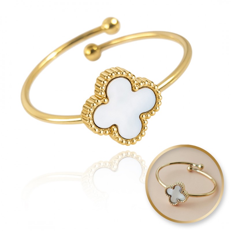 Pierścionek stal chirurgiczna platerowana złotem regulowany, koniczynka masa perłowa PST952
