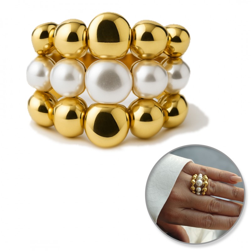 Pierścionek stal chirurgiczna platerowana złotem regulowany PERŁY KULKI PST945