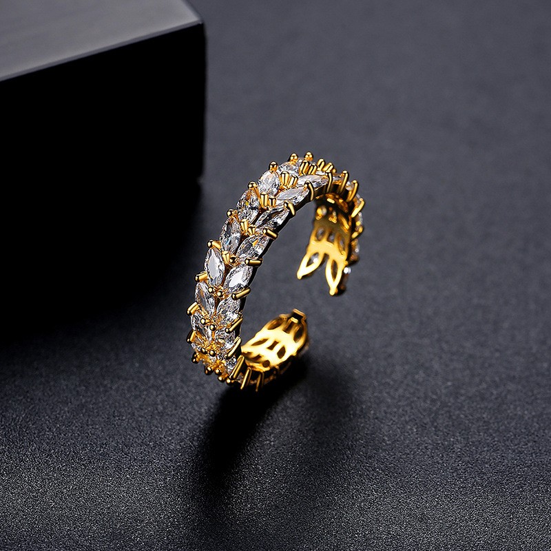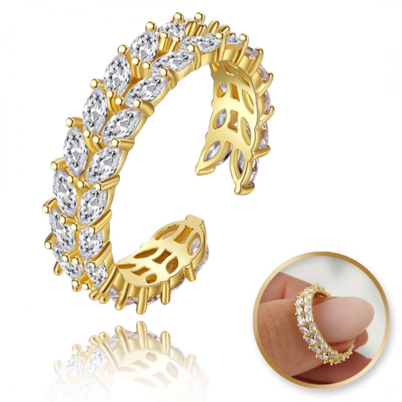 Pierścionek stal chirurgiczna platerowana złotem, regulowany z cyrkoniami PST933
