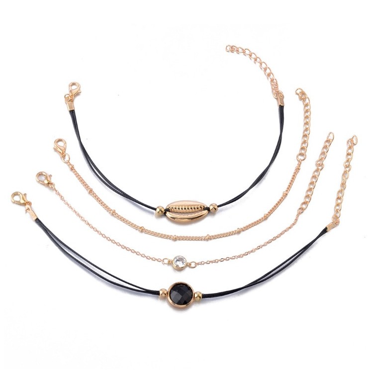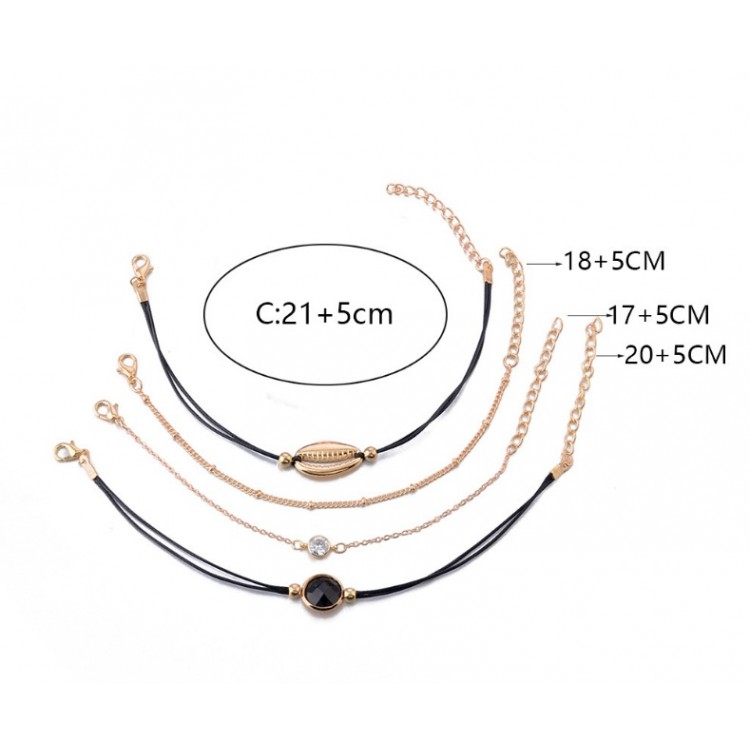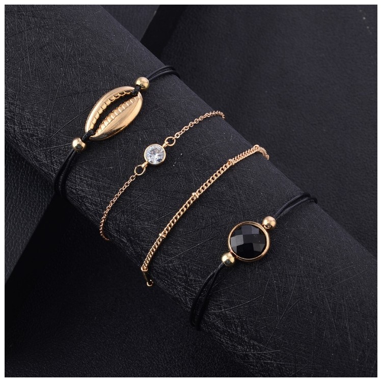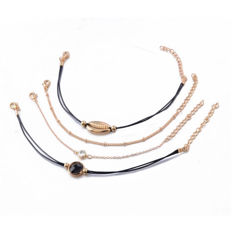 Zestaw 4w1 bransoletki złote muszelka oczko B320