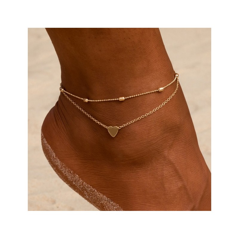 Zestaw bransoletek na kostkę Jeżeli chcesz pochwalić się modnym dodatkiem to musisz mieć ten zestaw!Idealna do sandałek, na boso, do adidasów czy wysokich obcasów do białych sukienek!MUST HAVE !Wykonana jest ze stopów metali nieszlachetnych.Nie zawiera niklu ani chromu.Wymiary:Bransoletka z serduszkiem: długość: 22 + 6 cm regulacjiBransoletka z koralikami: 20,5 + 6 cm regulacji